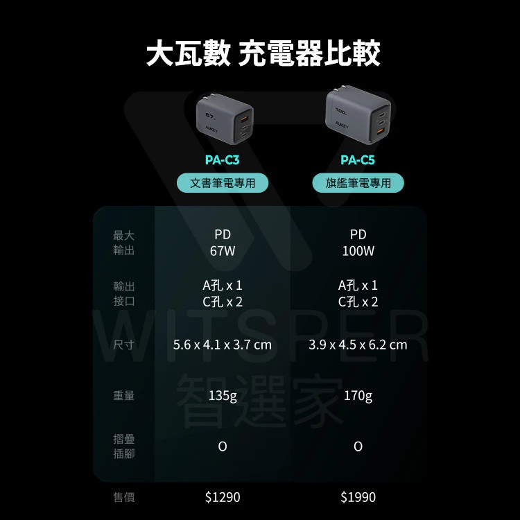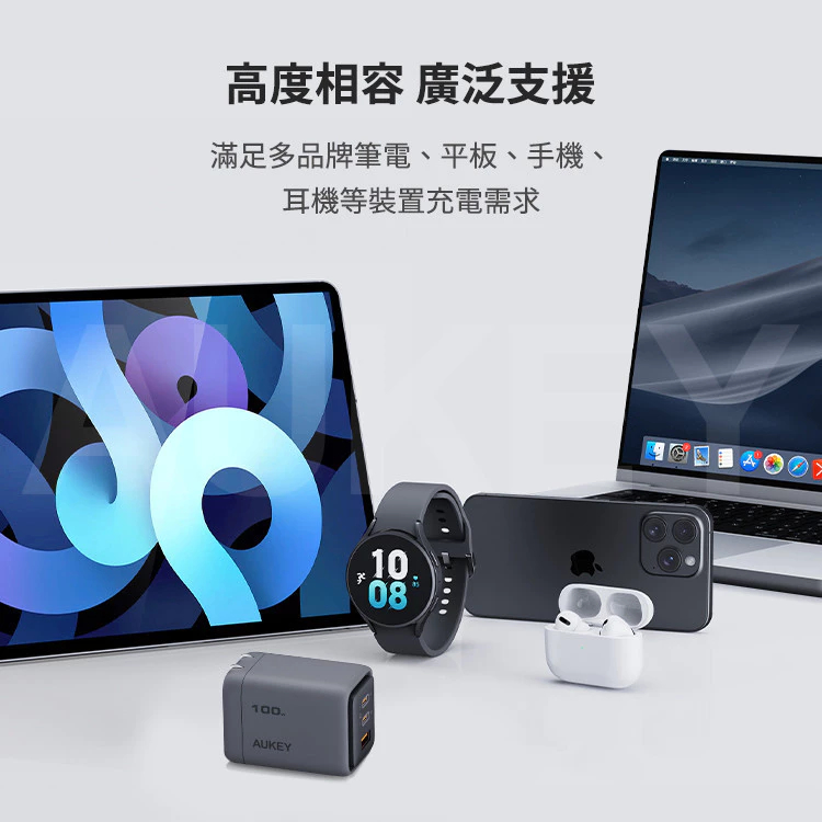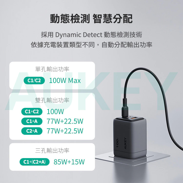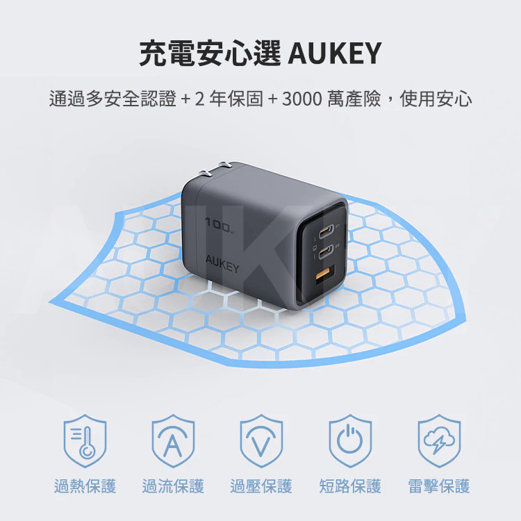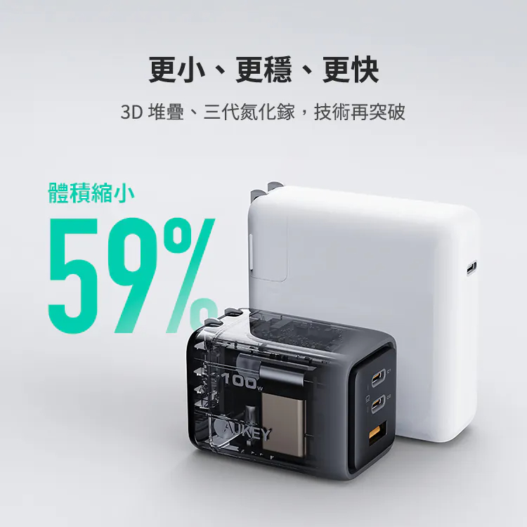 Aukey Comet Mix 3 100W 氮化鎵 電源供應器 充電器 TypeC PD快充 充電頭 AKY007100W 1A2C 灰Cables, Chargers & ConvertersQ哥 旗艦商城|最專業的保護貼手機配件