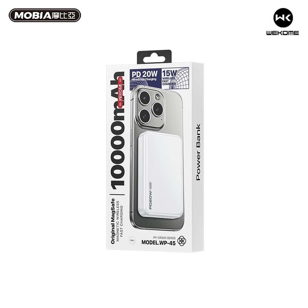 WEKOME WP-45 原配磁吸15W背夾無線快充行動電源10000mAh 大容量小體積 一貼即充 正版台灣公司貨白色|粉色|紫色Powerbanks & BatteriesREMAX 官方旗艦店