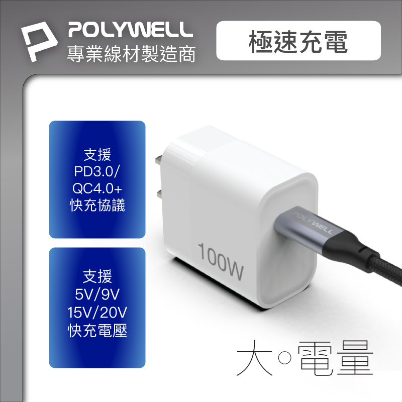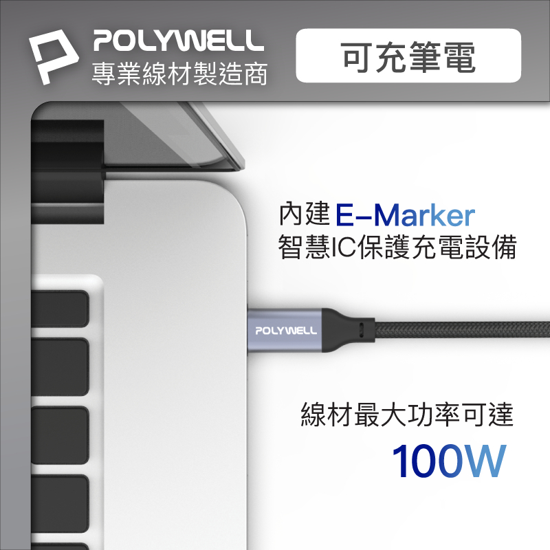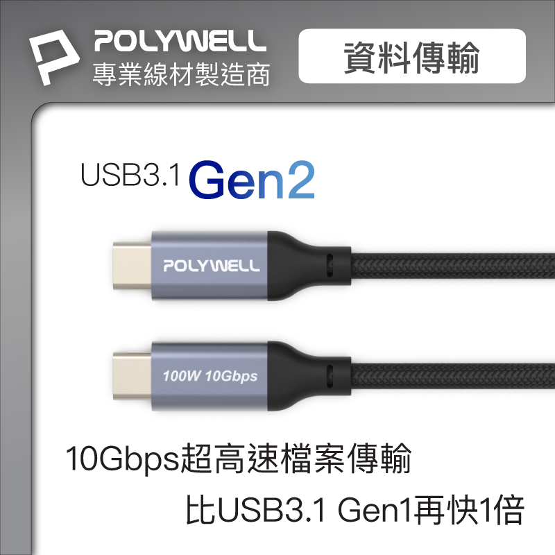 POLYWELL USB 3.1 3.2 Gen2 10G 100W Type-C 高速傳輸充電線 寶利威爾 台灣現貨灰色款,1米/100公分|灰色款,2米/200公分|一般款,1米/100公分|一般款,2米/200公分|彎頭款,1米/100公分|彎頭款,2米/200公分Cables, Chargers & ConvertersPOLYWELL寶利威爾官方旗艦店