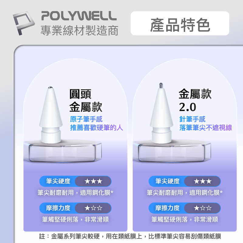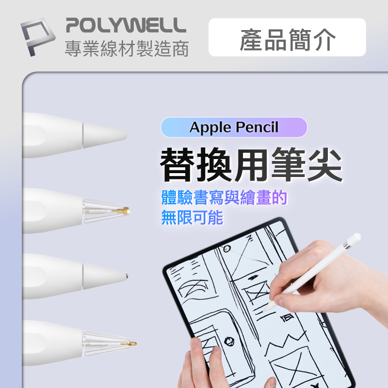 POLYWELL 蘋果Apple Pencil 筆尖4入組 複合筆尖 金屬筆尖 適用類紙膜 鋼化膜 寶利威爾 台灣現貨白色/ 標準筆尖(2H)|白色/ 標準筆尖(2B)|白色/ 圓頭金屬款|白色/ 金屬款2.0|透明/ 標準筆尖(2H)|透明/ 圓頭金屬款|透明/ 金屬款2.0StylusPOLYWELL寶利威爾官方旗艦店