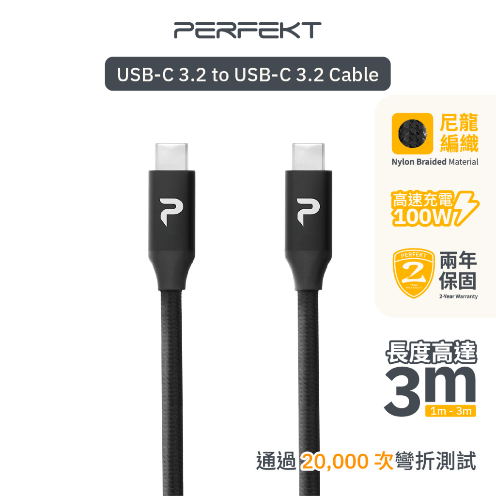 PERFEKT Type-C to Type-C PD快充線 傳輸線 100W高效快充 鋁殼編織1M|2M|3MCables, Chargers & ConvertersPerfekt 官方旗艦店