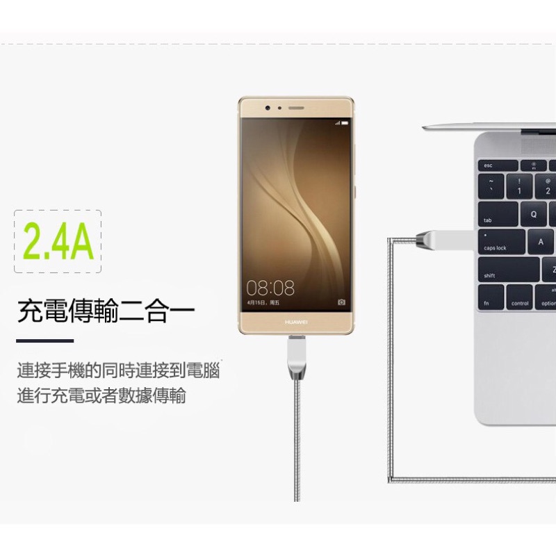 • 不鏽鋼 鋅合金 充電線 iphone 安卓 TypeC 快充線 三星充電