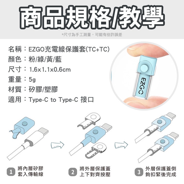 EZGO Type-C to Type-C 平果/安卓 保護線套 適用iphone16/15充電線 充電線套充電線保護套 TC+TC專用-粉色|充電線保護套 TC+TC專用-綠色|充電線保護套 TC+TC專用-黃色|充電線保護套 TC+TC專用-藍色OthersSHOWHAN手機周邊生活用品旗艦店