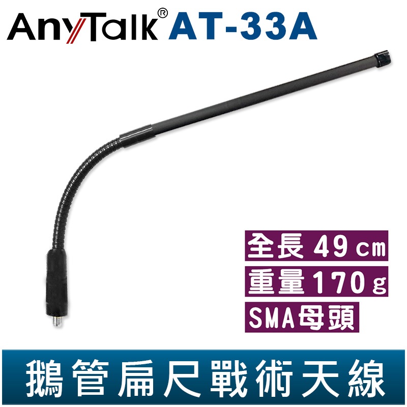 【AnyTalk】AT-33A 無線電 對講機 外接 雙頻 戰術 萬向 鵝管 天線 49cm SMA母頭 FT-355AT-124A|AT-33A|AT-48A|AT-72AROWA 樂華數位