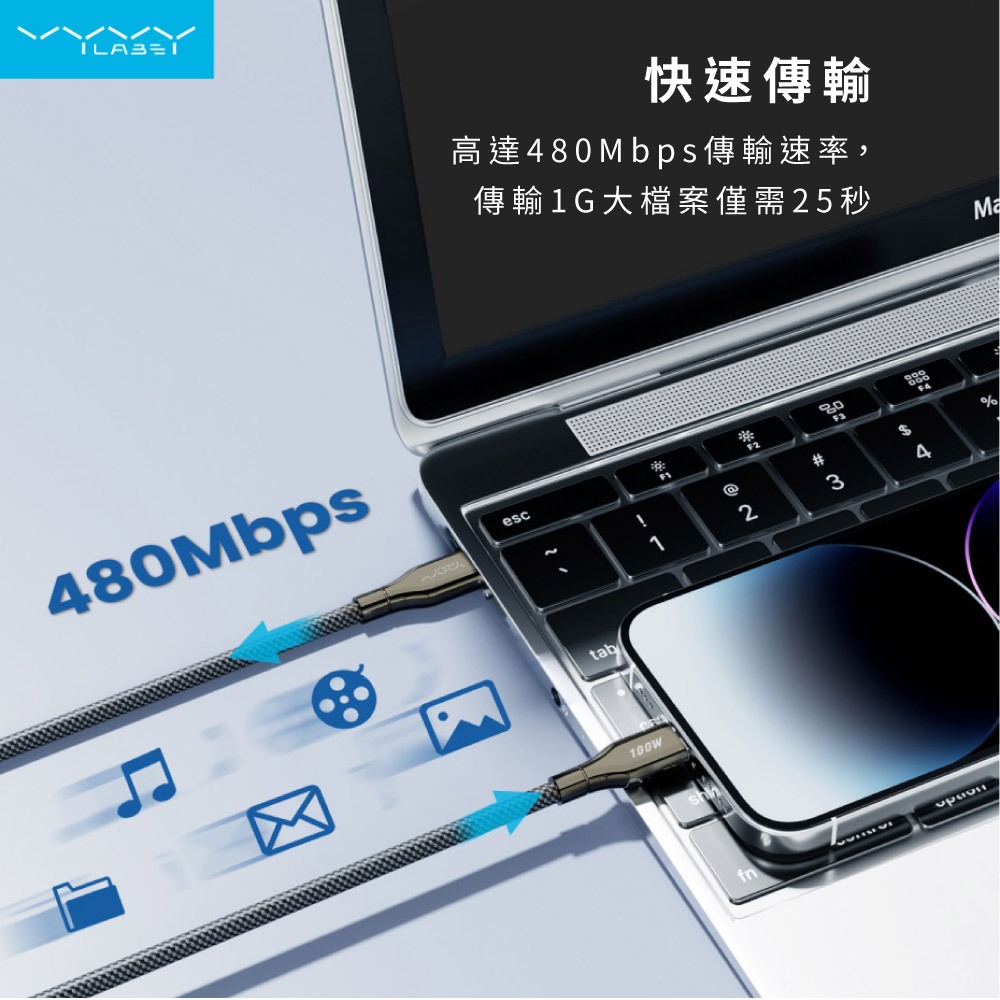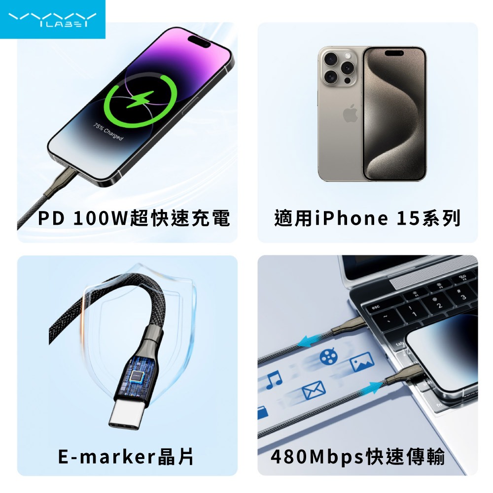 【Vyvylabs】100W硬核系列 雙Type-C 快充數據線 Type-C to Type-C 充電線 快充線