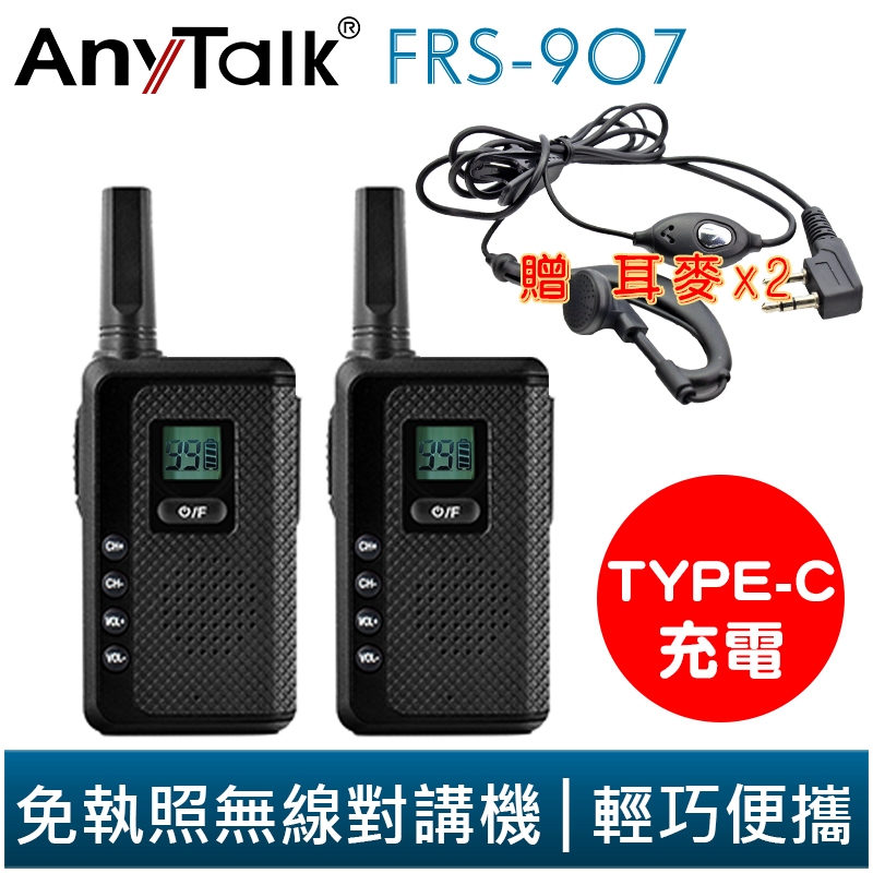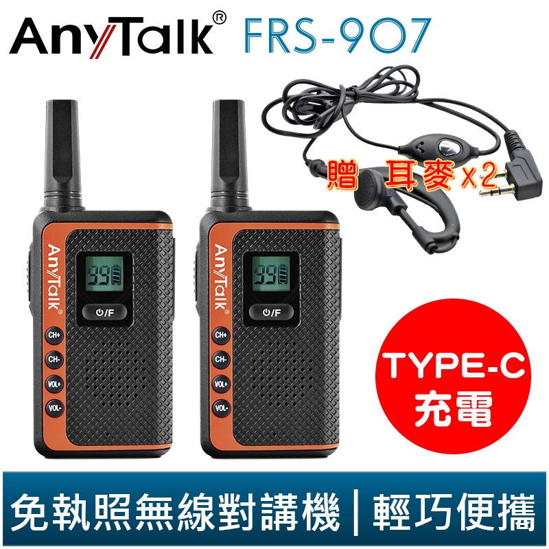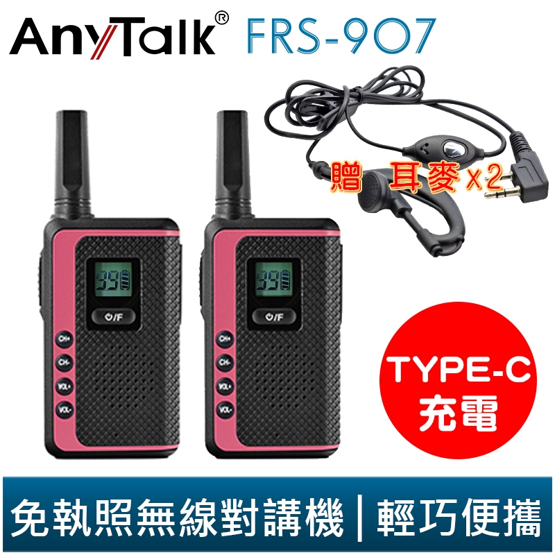 【AnyTalk】FRS-907 免執照 無線對講機 一組兩入 贈 耳麥 TYPE-C 供電 輕巧 顯示電量 現貨FRS-907(黑色)+一般耳麥|FRS-907電池一顆|FRS-907(藍色)+一般耳麥|FRS-907(粉色)+一般耳麥|FRS-907(橘色)+一般耳麥ROWA 樂華數位