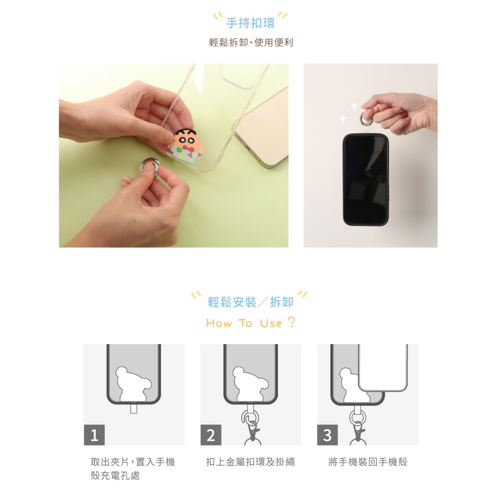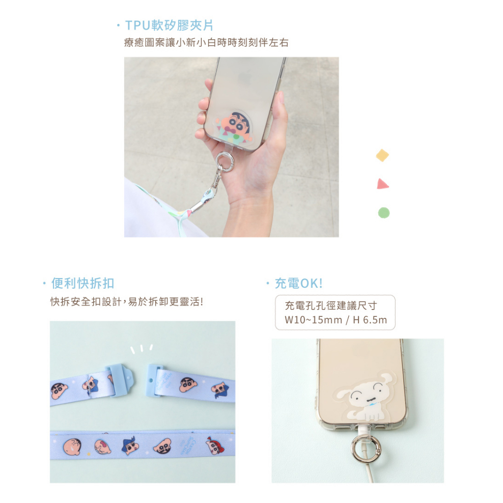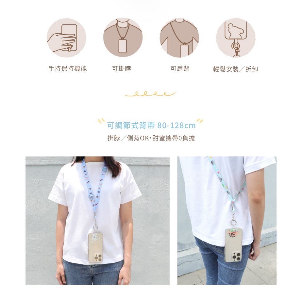 蠟筆小新手機夾片掛繩組- Norns Original Design正版授權 可側背手機繩 墊片2way可調式頸繩睡衣小新|小白Phone Straps & KeychainsNorns