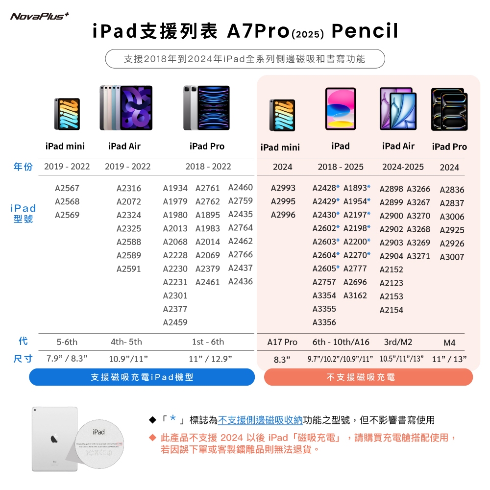 【NovaPlus】磁吸充電/傾斜角iPad Pencil A7Pro 平板觸控筆:Apple Pencil 1 2替代經典白2025(適用mini7需搭充電艙,加購一組磁吸充電艙 – 座充版|星曜黑(適用2023以前iPad機種,加購一組磁吸充電艙 – 座充版|經典白2025(適用mini7需搭充電艙,不加購|經典白2025(適用mini7需搭充電艙,加購一組AX筆尖(內含4枚耐磨替換筆尖)|經典白2025(適用mini7需搭充電艙,加購一組NX筆尖(3枚不同粗細金屬筆尖)|星曜黑(適用2023以前iPad機種,加購一組AX筆尖(內含4枚耐磨替換筆尖)|星曜黑(適用2023以前iPad機種,不加購|星曜黑(適用2023以前iPad機種,加購一組NX筆尖(3枚不同粗細金屬筆尖)StylusNovaPlus樂晴科技【臺灣品牌|正品保固】