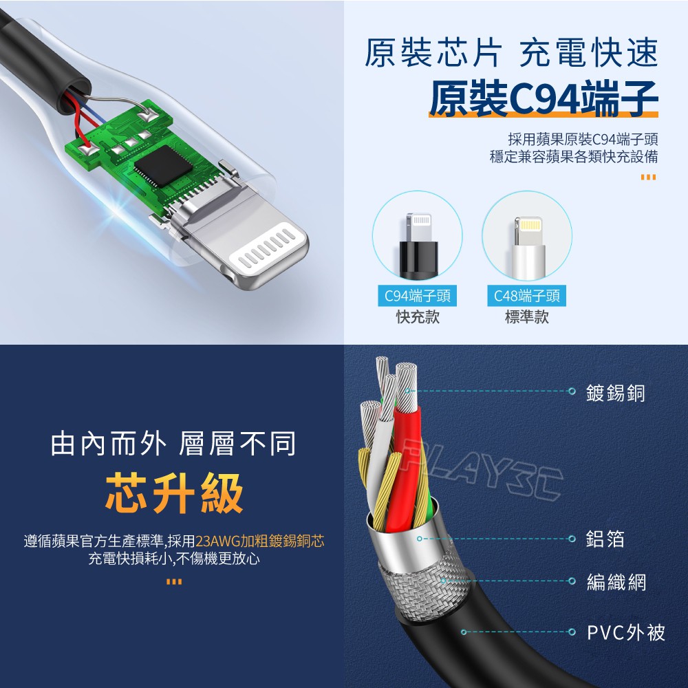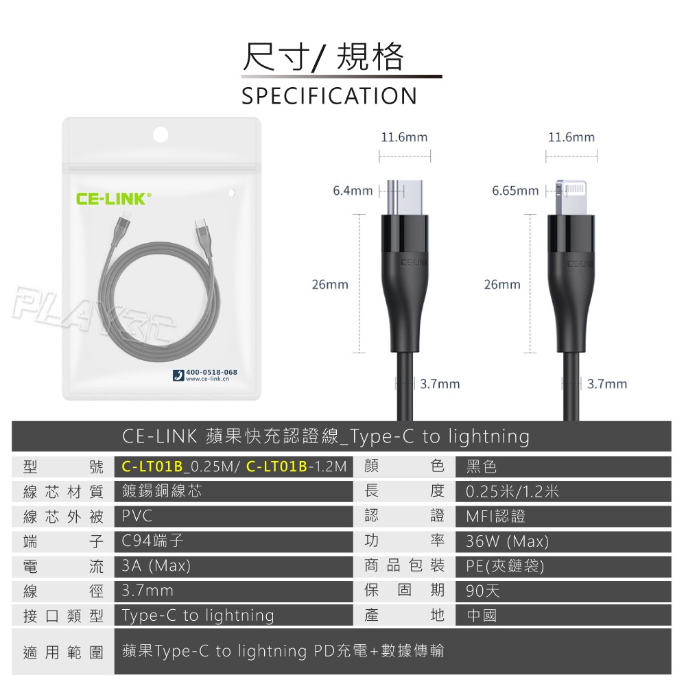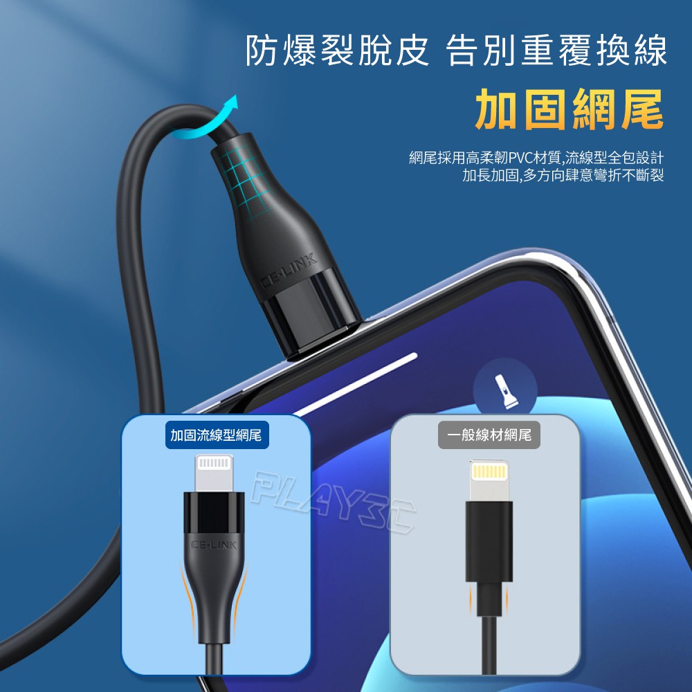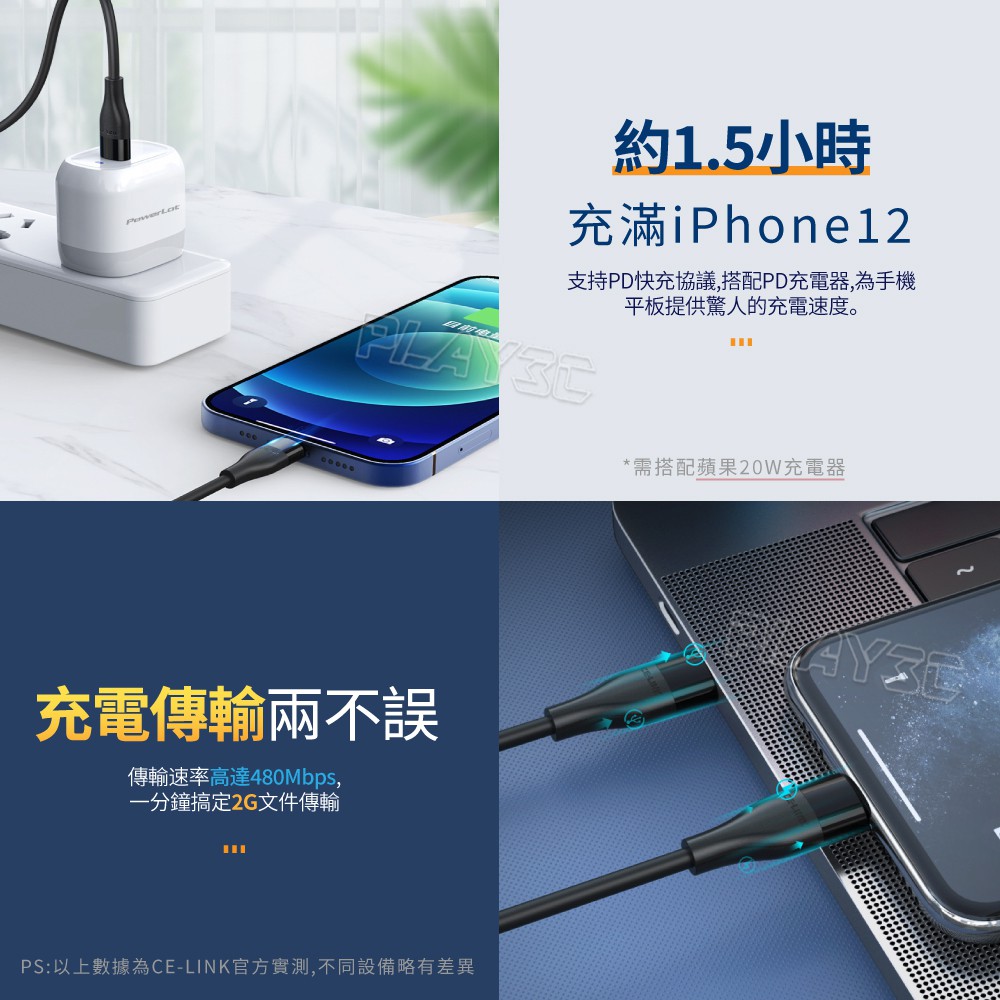 CE-LINK MFi認證 iphone充電線 120公分 typec 充電線 lightning PD快充線 C94【蘋果 TYPE-C 1.2米】Cables, Chargers & ConvertersPLAY3C創意生活館