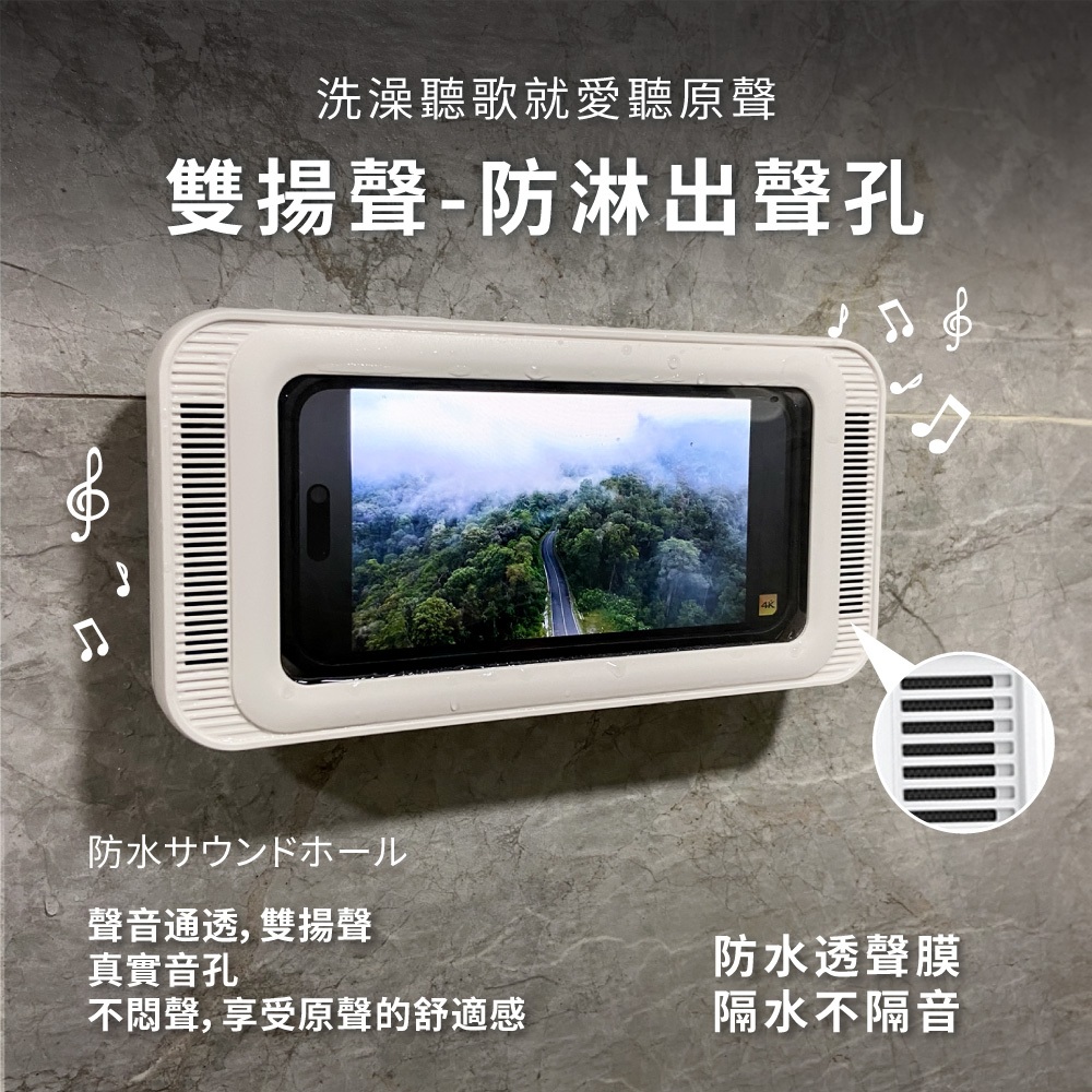 浴室防水手機盒 浴室手機盒 防水手機盒 浴室 防水手機架 浴室神器 立體聲白色|黑色Mobile PouchesPLAY3C創意生活館
