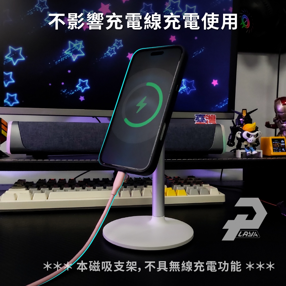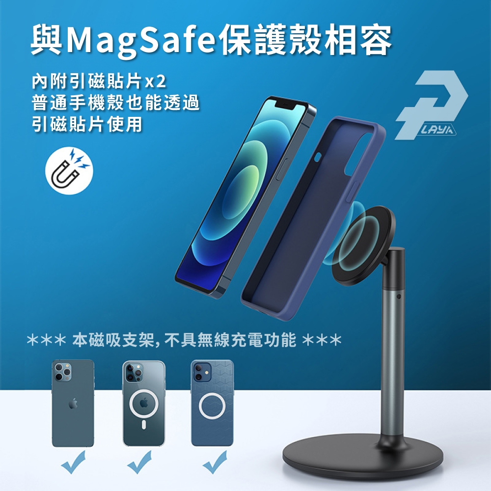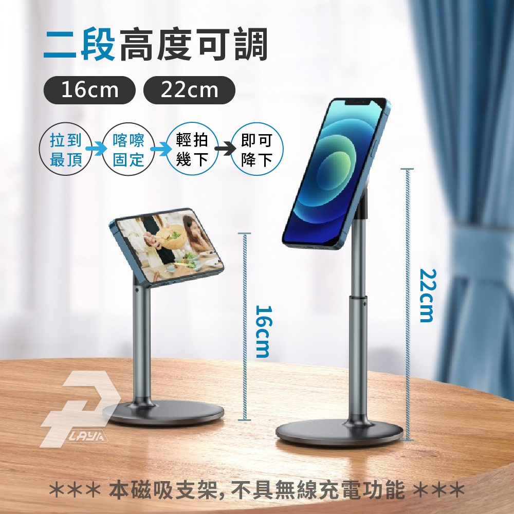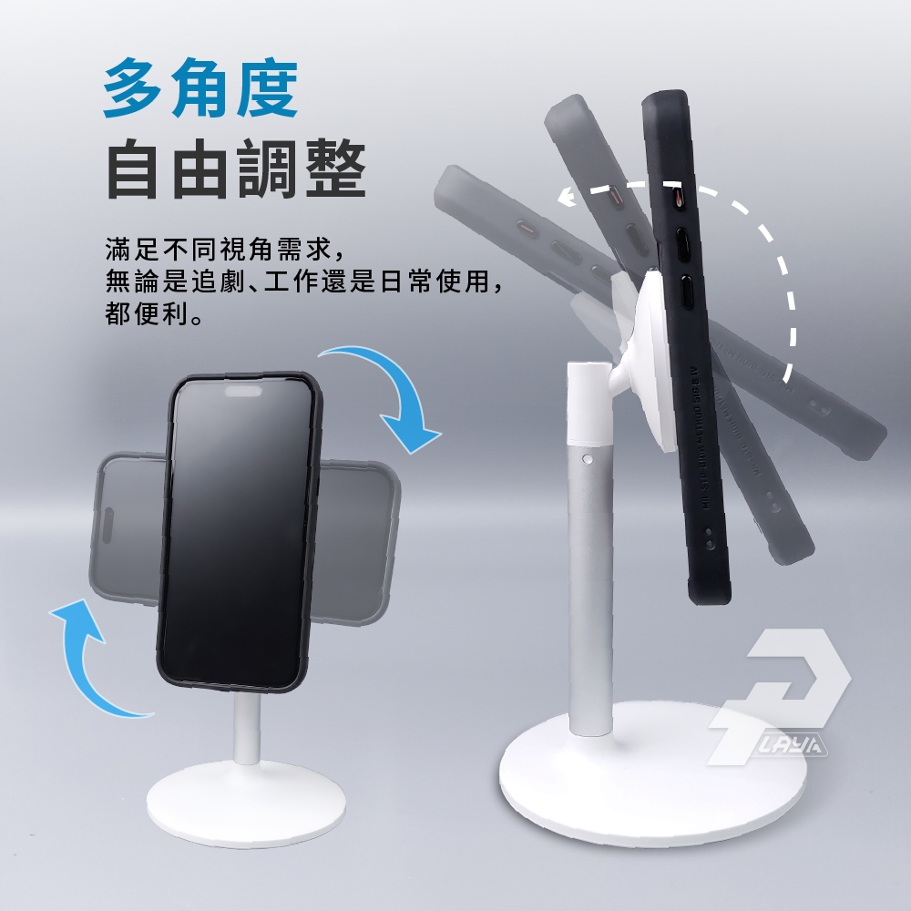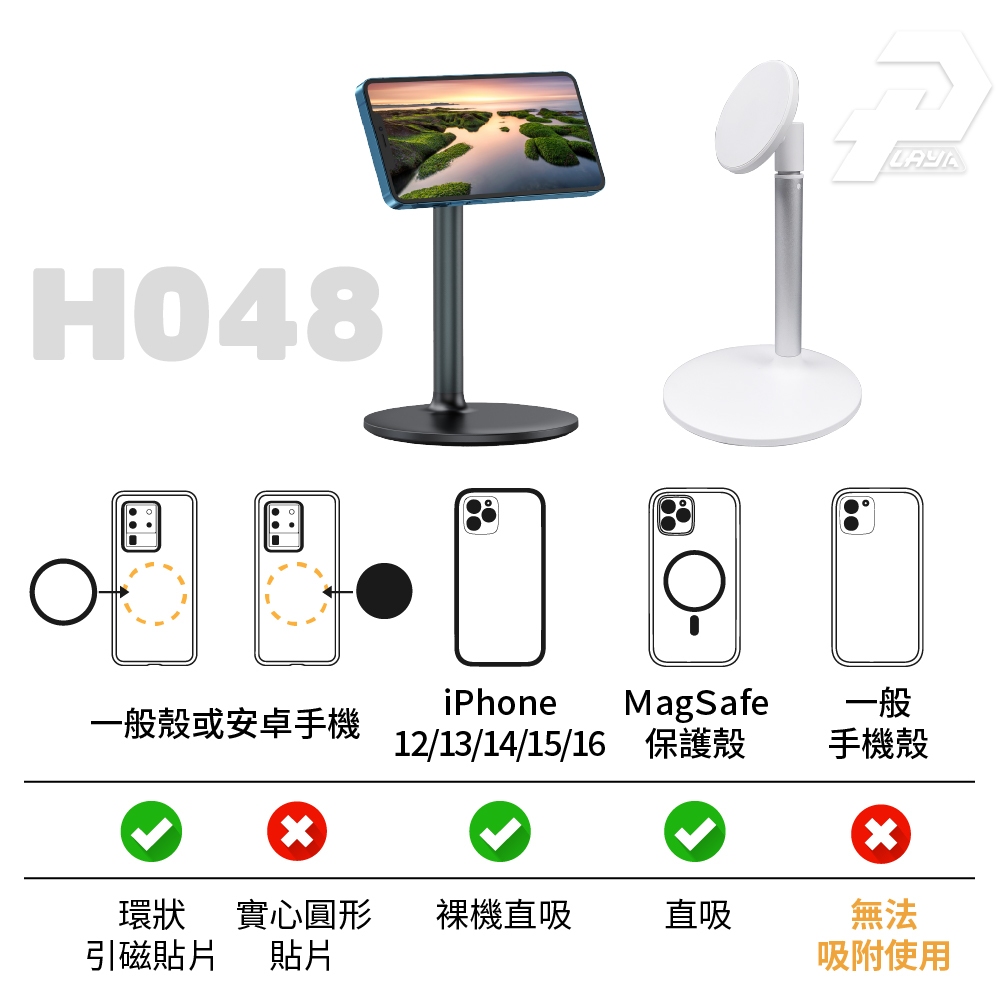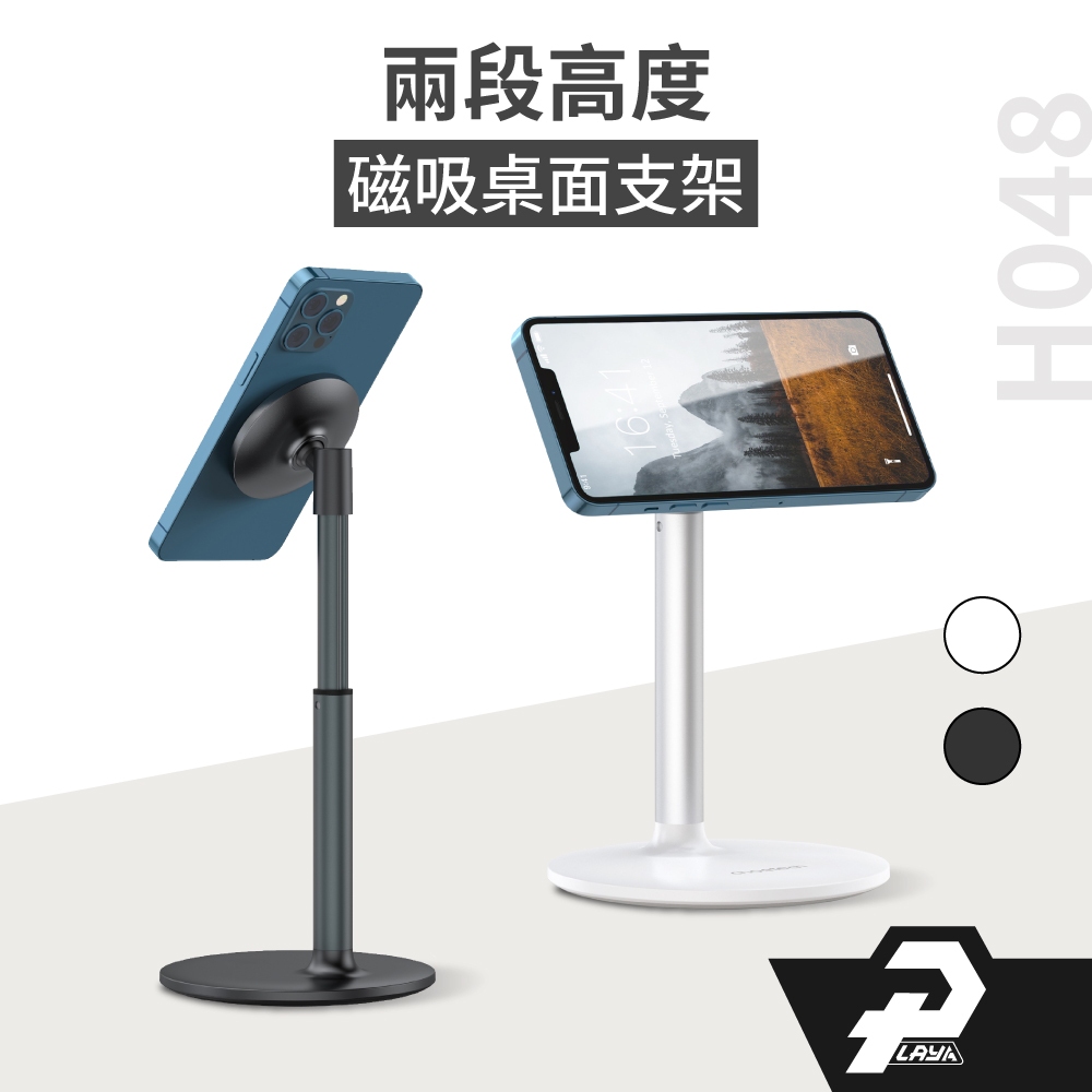 桌上型磁吸手機架 簡約風格 鋁合金 懶人手機架 磁吸支架 相容magsafe尺寸 H048黑色|白色Phone GripsPLAY3C創意生活館
