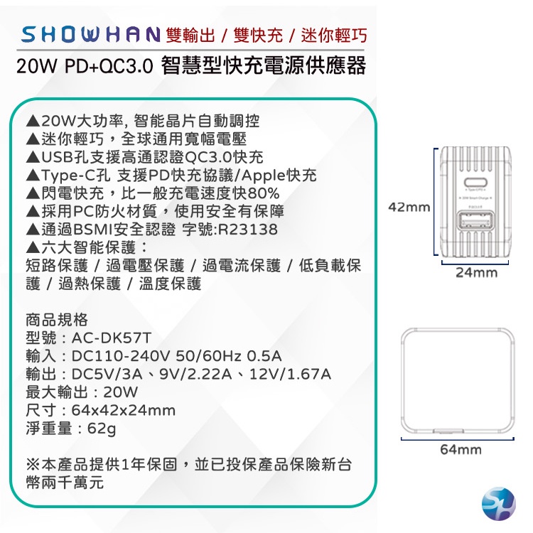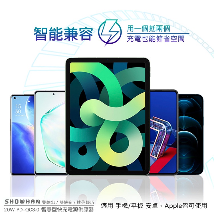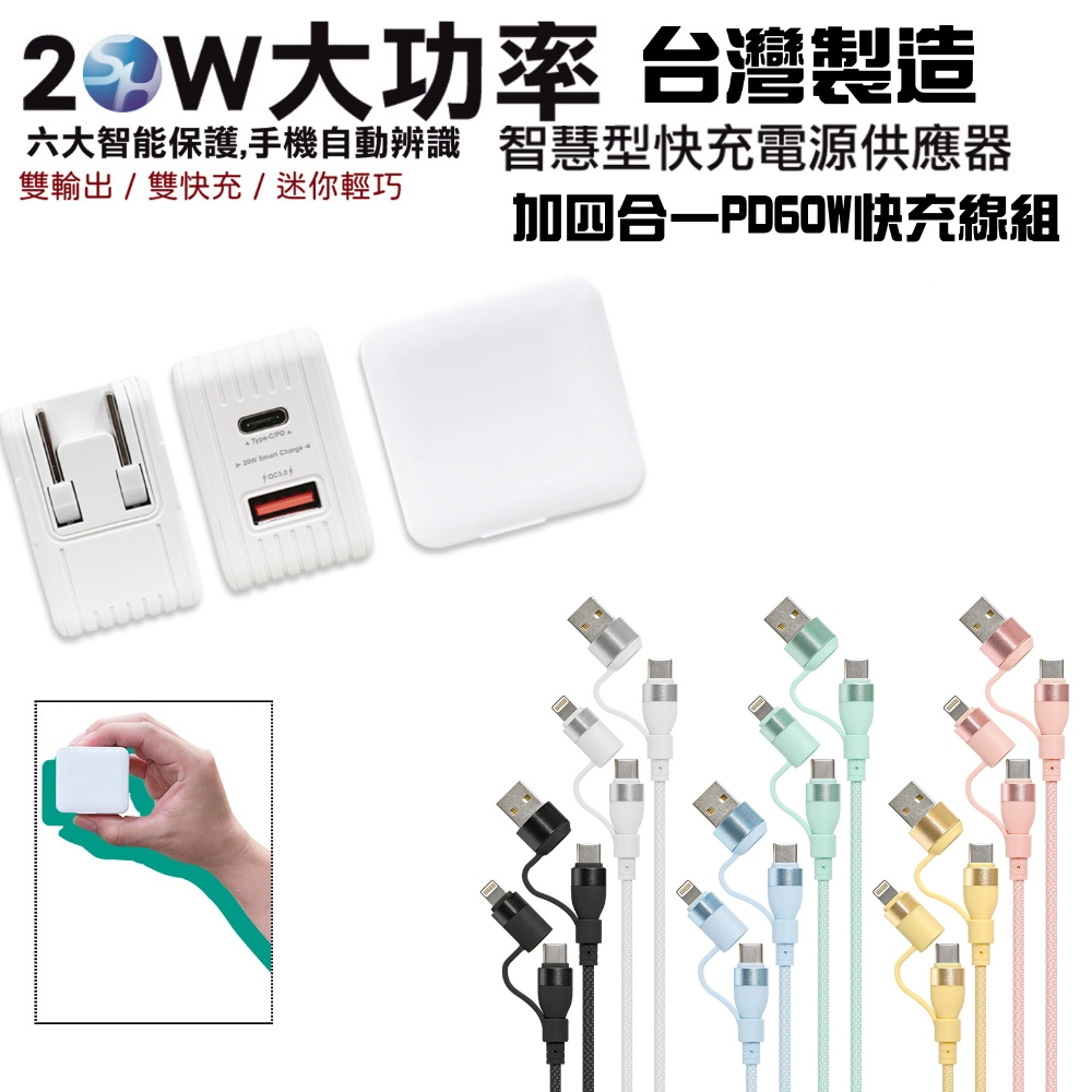 SHOWHAN 台灣製公司貨 20W PD+QC3.0充電器+四合一PD60W快充線組20W充電器+PD四合一充電線1.2m粉|20W充電器+PD四合一充電線1.2m白|20W充電器+PD四合一充電線1.2m黑|20W充電器+PD四合一充電線1.2m綠|20W充電器+PD四合一充電線1.2m藍|20W充電器+PD四合一充電線1.2m黃Cables, Chargers & ConvertersSHOWHAN手機周邊生活用品旗艦店