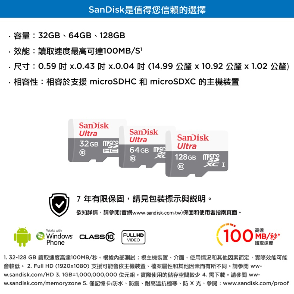 SanDisk晟碟 MicroSD32G 64G128G 記憶卡(原廠 7年保固)32GB FAT32 [贈2合1收納盒]|64GB 100MB [贈2合1收納盒]|128GB 100MB[贈2合1收納盒]Memory CardsSigma Digi 希格數位官網