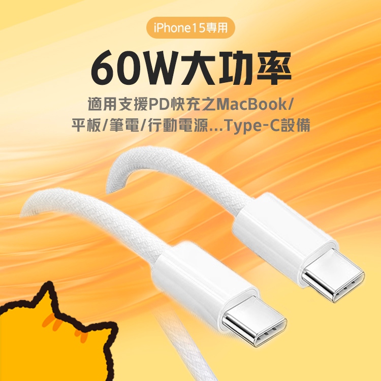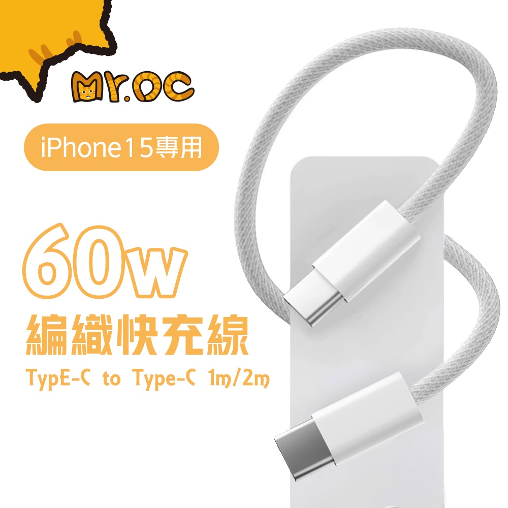 Mr.OC 編織快充電線 Type-C to Type-C 60W 適用 安卓 三星 平果15 240W i16專用