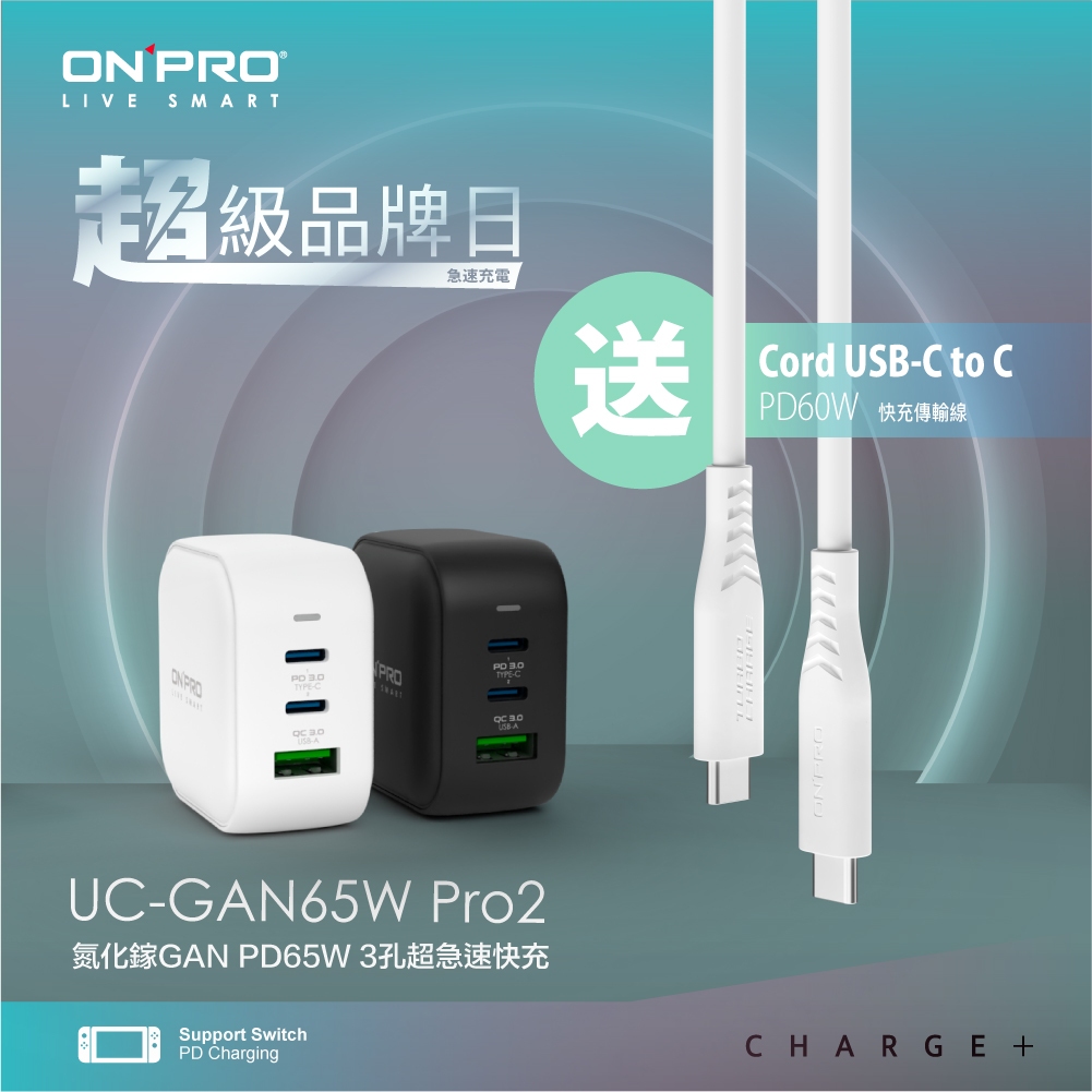 ONPRO UC-GAN65W 氮化鎵GaN 65W 3孔PD快充充電器 PRO2 【贈線限時快閃】石墨黑|冰雪白Cables, Chargers & ConvertersONPRO超急速充電 官方旗艦館