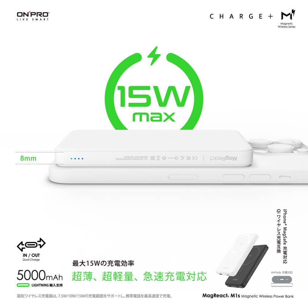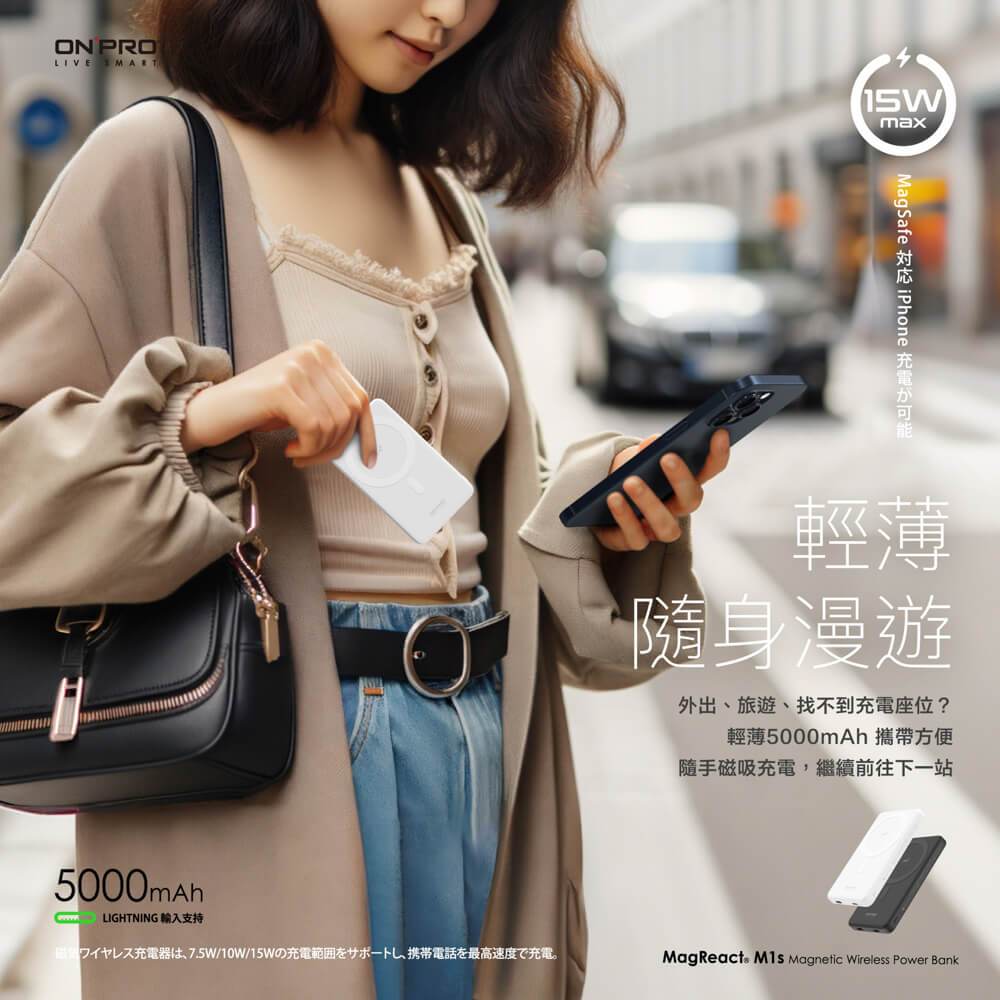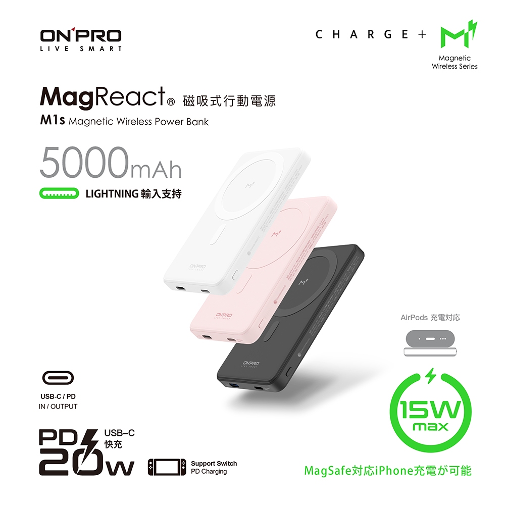ONPRO MagReact M1s 5000mAh 磁吸無線急速行動電源 Magsafe磁吸行動電源【Wh已標示】石墨黑|典雅白|珊瑚粉Powerbanks & BatteriesONPRO超急速充電 官方旗艦館