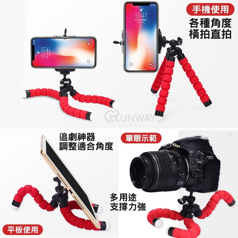 【送手機夾】可彎曲 八爪章魚 三腳架 手機支架 腳架 手機 相機 支架 gopro支架 迷你三腳架 直播腳架 懶人手機架紅色,不含運費訂單滿50元才出貨|黑色,不含運費訂單滿50元才出貨Selfie AccessoriesRunway Collection