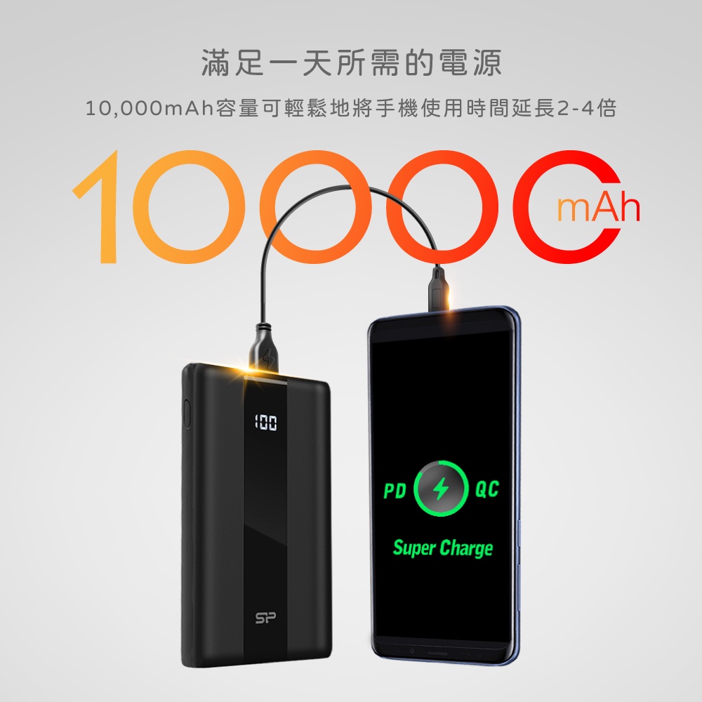 【可登機+電量顯示】SP QP55 10000mAh輕巧快充行動電源|PD/QC雙快充 支援iPhone/AndroidQP55+Type-C PVC (白)|QP55+雙Type-C傳輸線(黑)|QP55 + CC 編織 黑 L型|QP55 快充 (10000mAh)Powerbanks & BatteriesSP廣穎電通 官方旗艦店