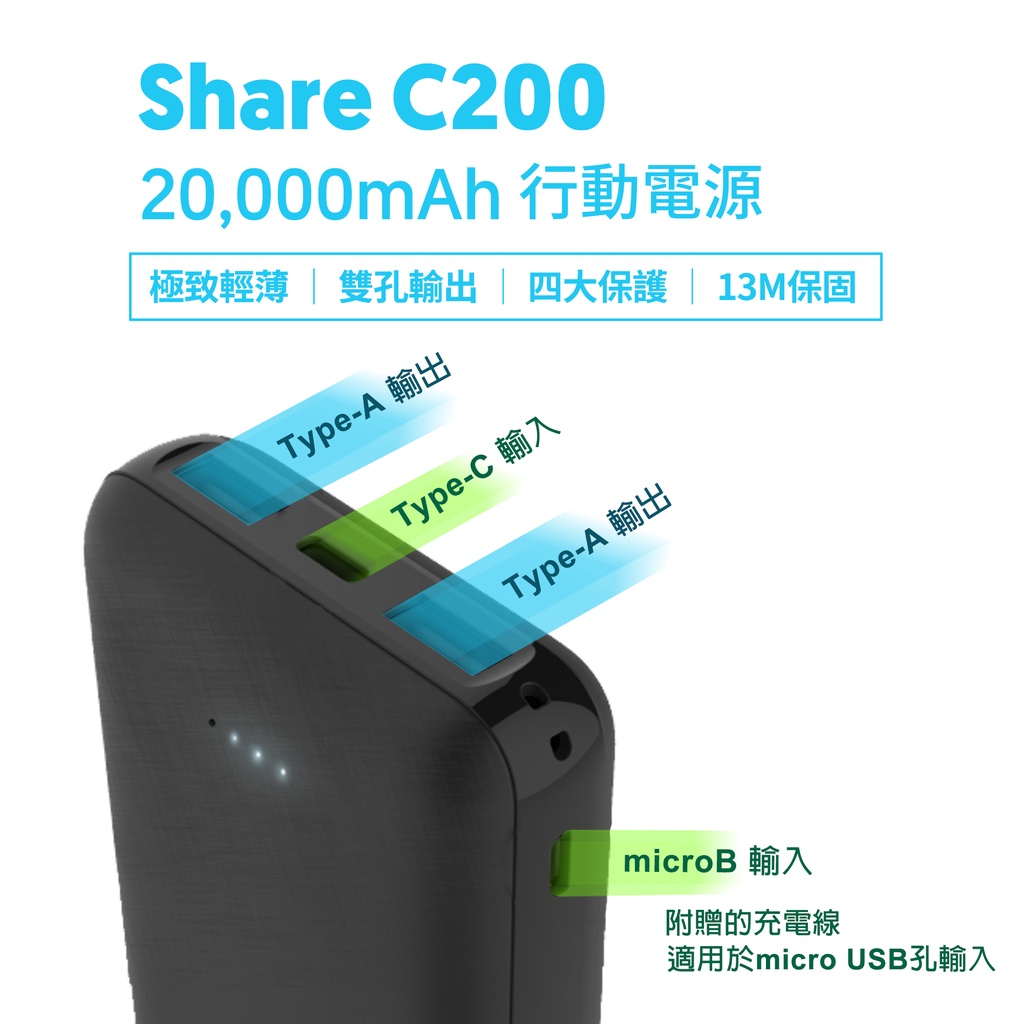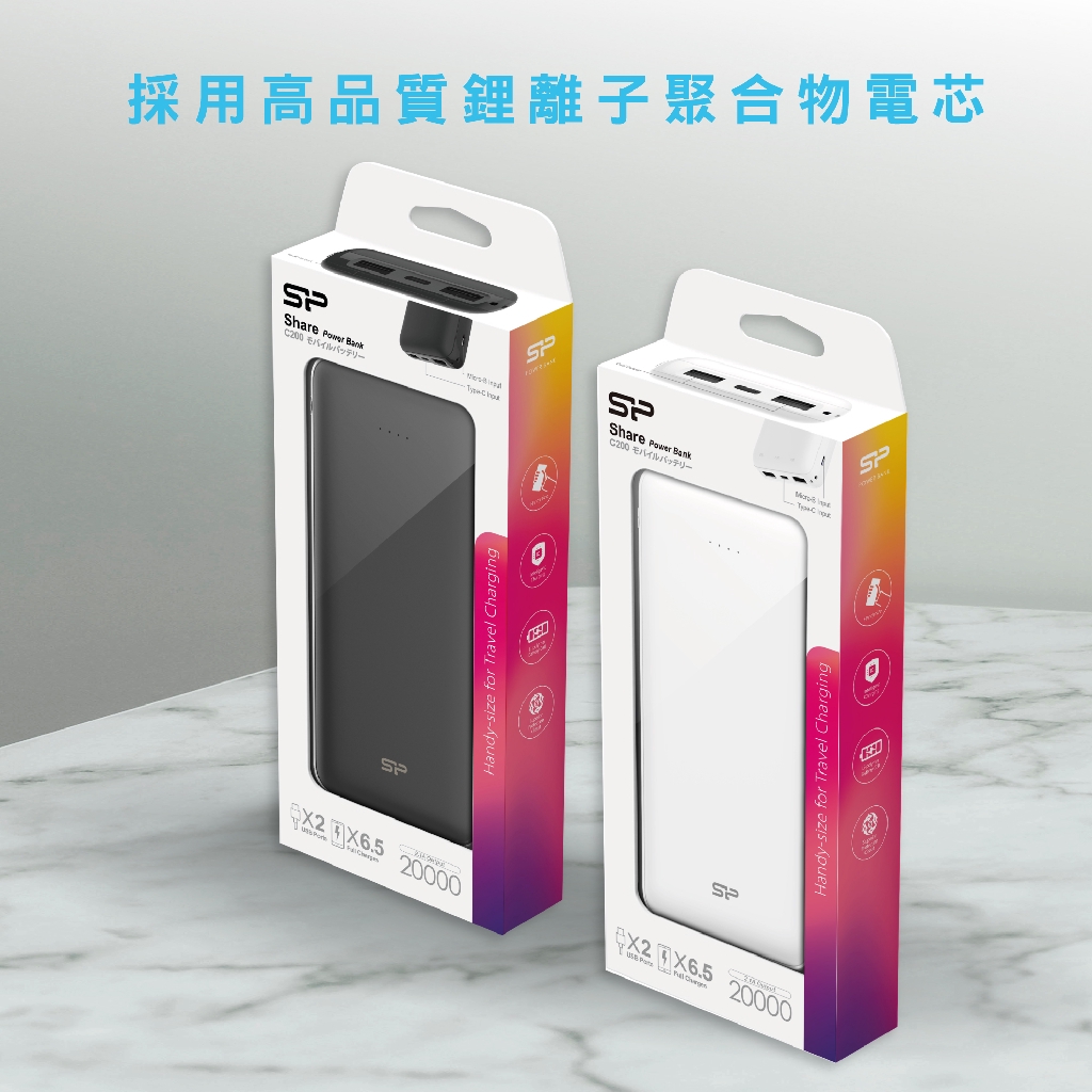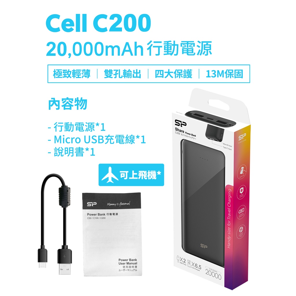 【有標示Wh】SP C200 20000mAh 行動電源 白 黑 USB雙充電口 2萬容量 可上飛機 13個月保固 廣穎白|黑|白 福利品出清|黑 福利品出清Powerbanks & BatteriesSP廣穎電通 官方旗艦店