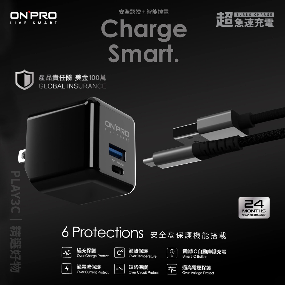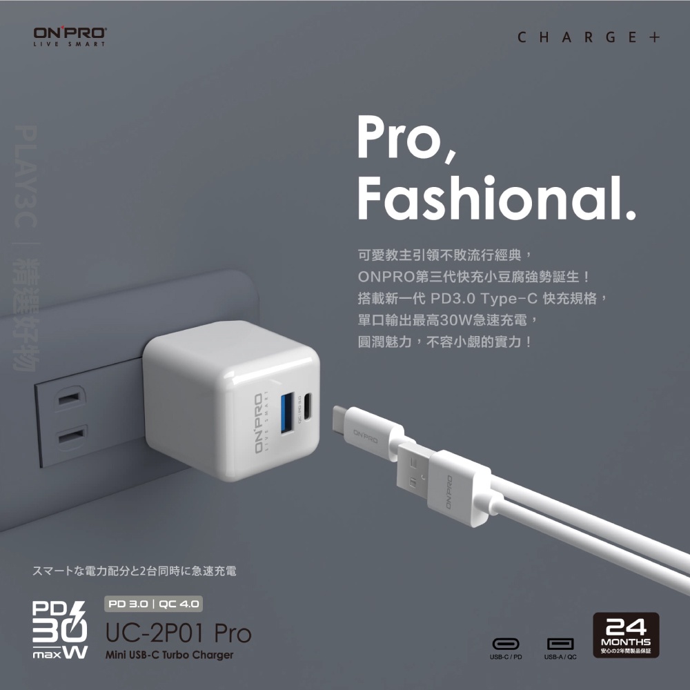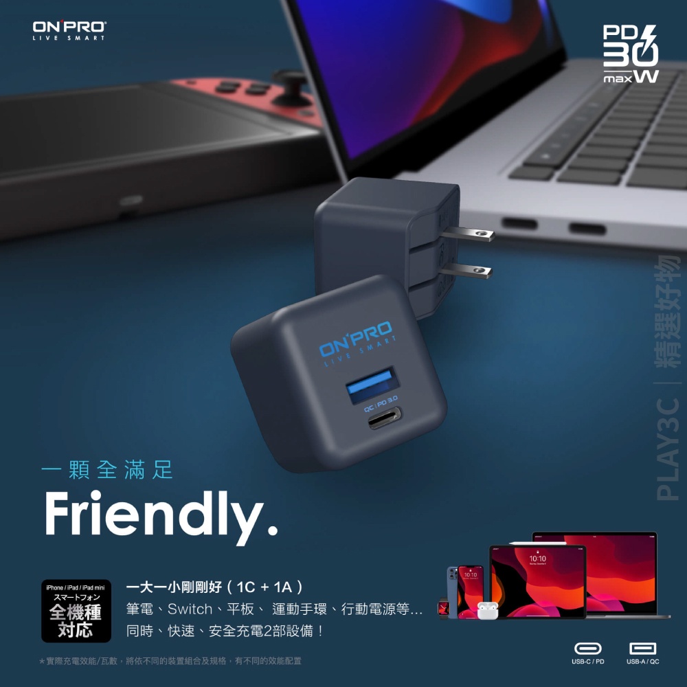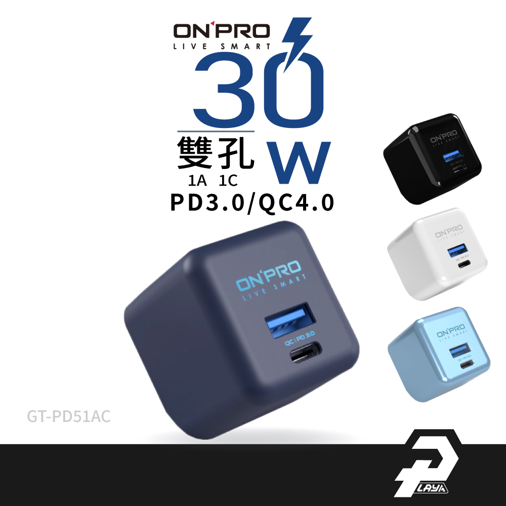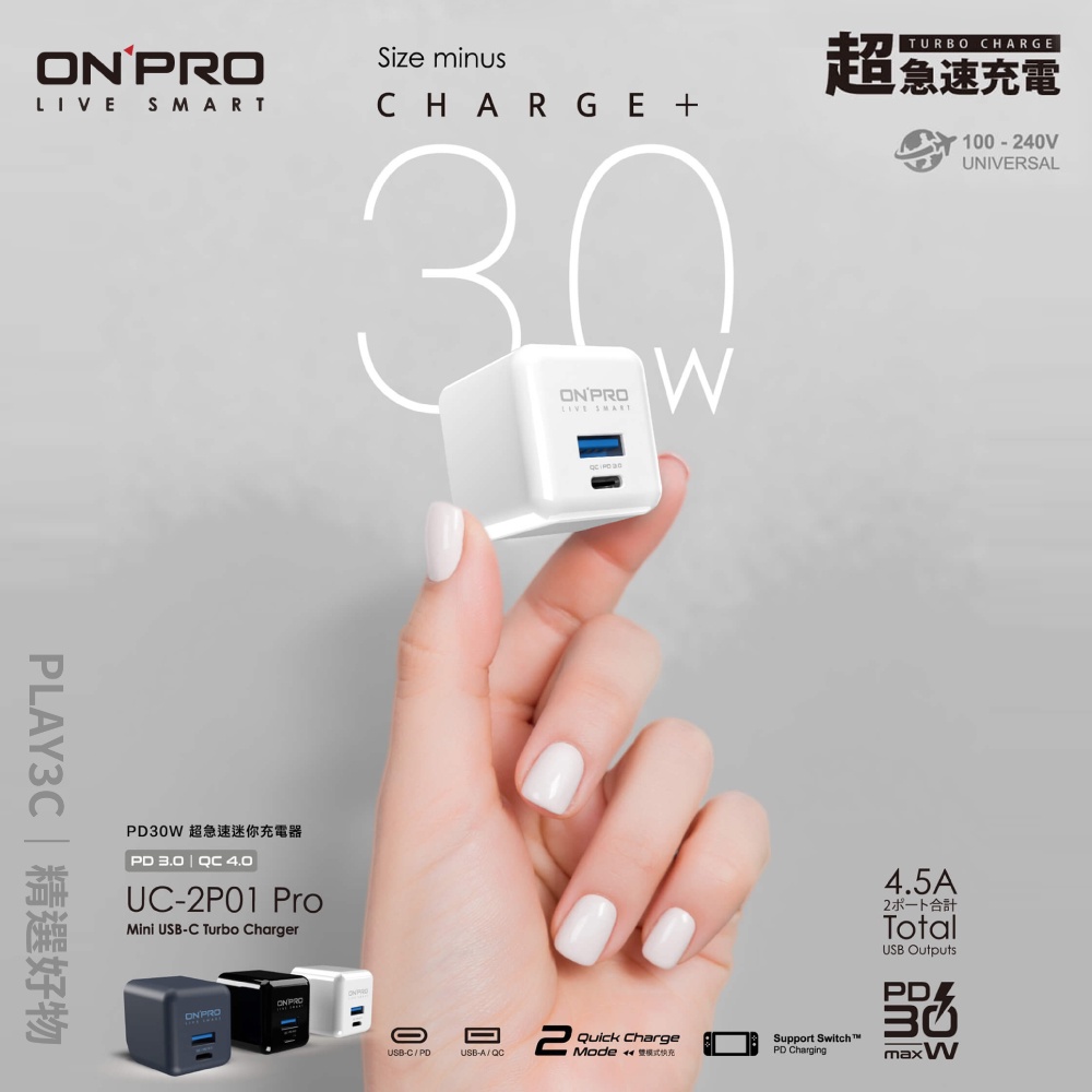 ONPRO 30W 出清優惠 PD 快充頭 豆腐頭 UC-2P01 Pro 充電器 QC 充電頭 PD3030W黑色|30W深藍|30W白色Cables, Chargers & ConvertersPLAY3C創意生活館