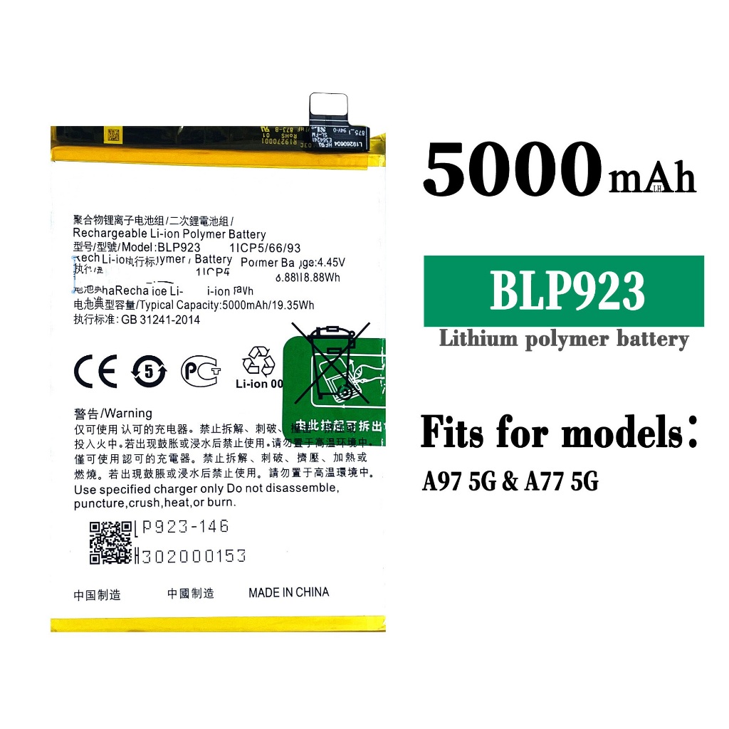 適用於OPPO A97 5G/A77手機電池BLP923大容量5000mah工廠批發外貿5000mahPowerbanks & BatteriesSuperMall 3C