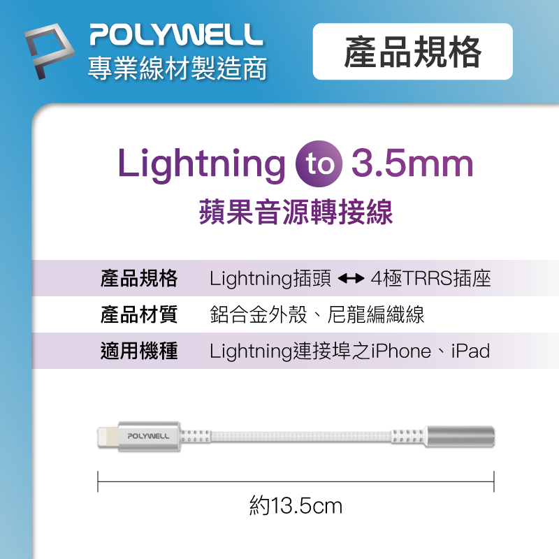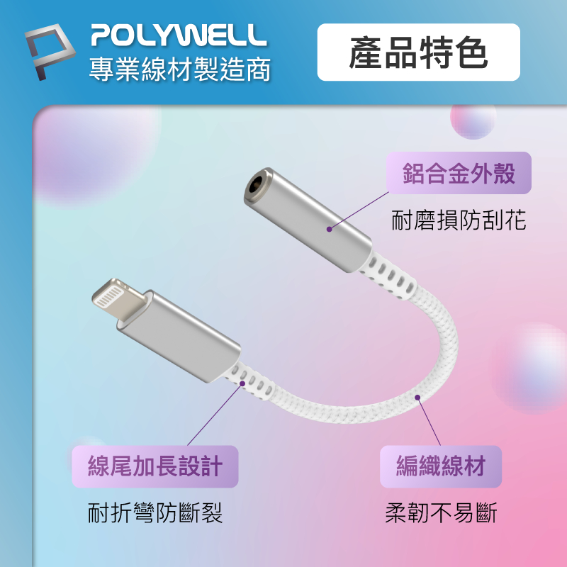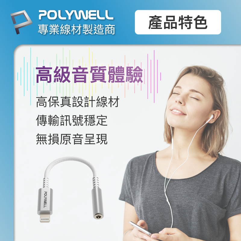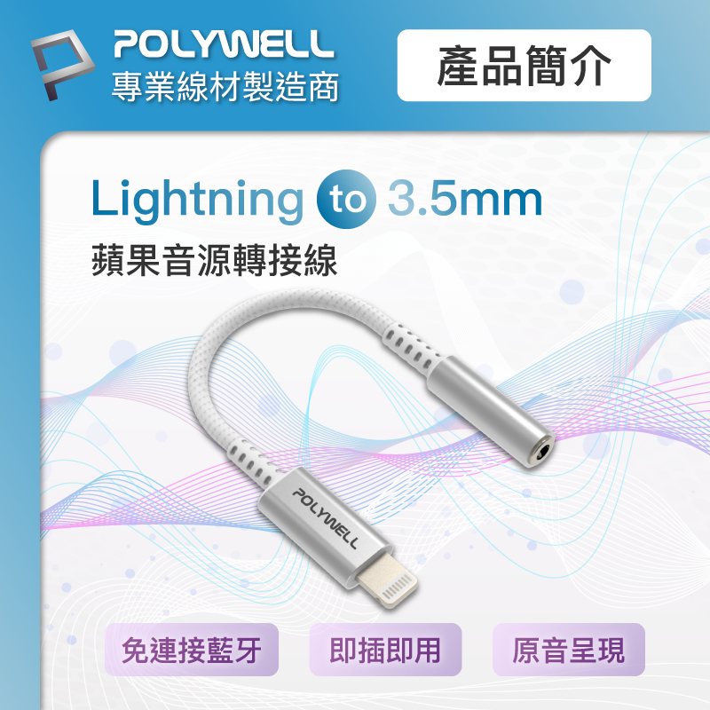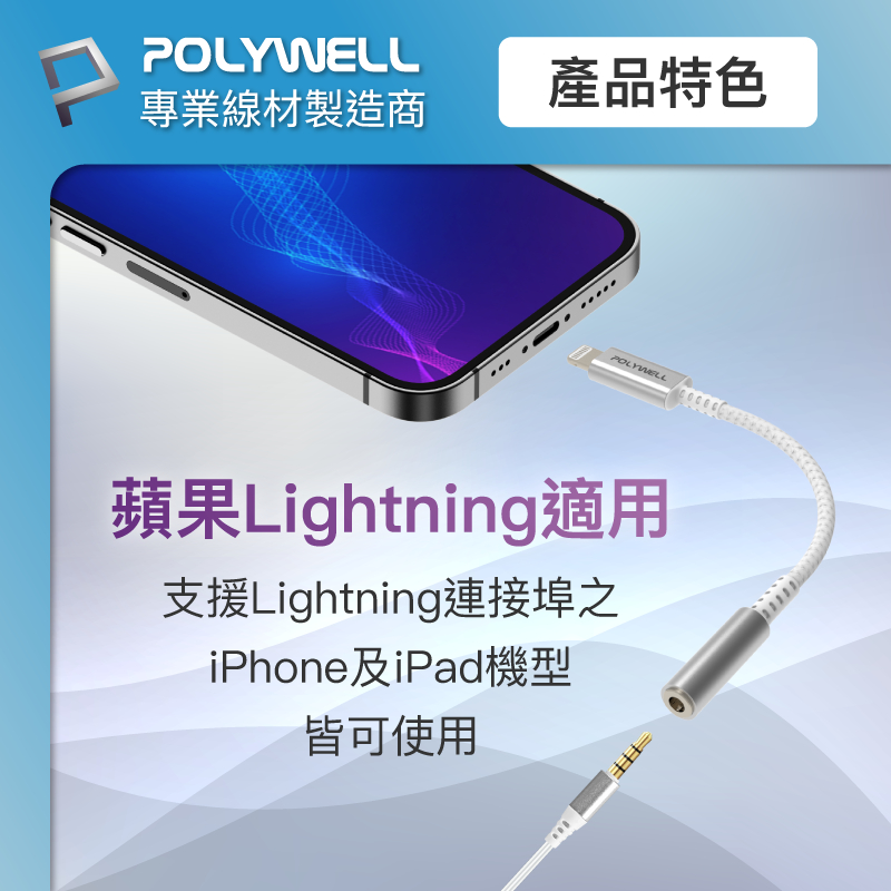 POLYWELL Lightning轉3.5mm 音源耳機轉接線 即插即用 全功能 適用iPhone 寶利威爾 台灣現貨Lightning轉3.5mm 音源耳機Cables, Chargers & ConvertersPOLYWELL寶利威爾官方旗艦店