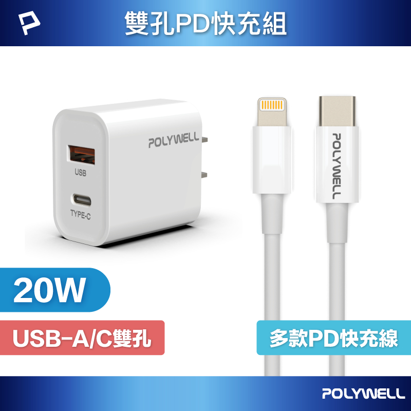 POLYWELL 20W PD雙孔快充組 充電頭+充電線 適用蘋果iPhone 安卓QC3.0 寶利威爾 台灣現貨20W雙孔快充頭+蘋果PD快充線 1M|20W雙孔快充頭+蘋果Mfi編織線 1M|20W雙孔快充頭+USB-C編織線 2M|20W雙孔快充頭+USB-C快充線 2M|20W雙孔快充頭+USB-C編織線 1M|20W雙孔快充頭+USB-C編織線 3M|20W雙孔快充頭+蘋果PD快充線 2M|20W雙孔快充頭+蘋果Mfi編織線 2M|20W雙孔快充頭+USB-C快充線 1M|20W雙孔快充+USB-C+L編織線1M|20W雙孔快充+USB-C+L編織線2MCables, Chargers & ConvertersPOLYWELL寶利威爾官方旗艦店