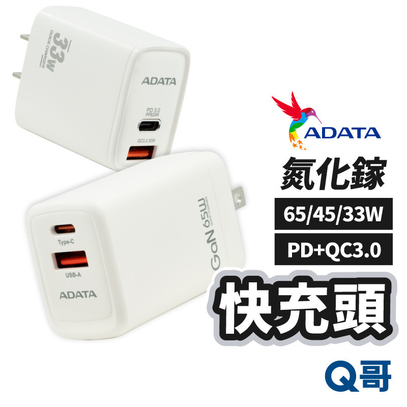 ADATA 威剛 雙孔 氮化鎵 充電器 65W TypeC USB-A 充電頭 豆腐頭 PD 快充頭 旅充 ADT2833W 小體積|Type-C+USB-A|45W 氮化鎵|Type-C+USB-A|65W 氮化鎵|Type-C+USB-ACables, Chargers & ConvertersQ哥 旗艦商城|最專業的保護貼手機配件