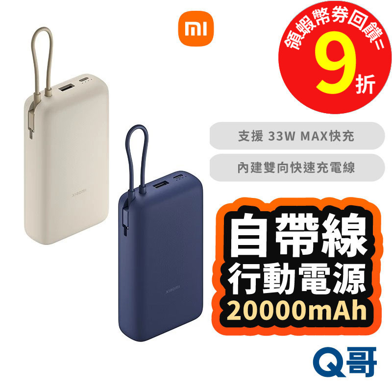 Xiaomi 小米 自帶線 行動電源 33W 20000mAh 快充 行充 USB-C 迷你 TypeC Mi149淺咖|灰藍|灰藍 福利品Powerbanks & BatteriesQ哥 電玩旗艦商城|Switch2 PS5 遊戲片 Xbox ptcg寶可夢