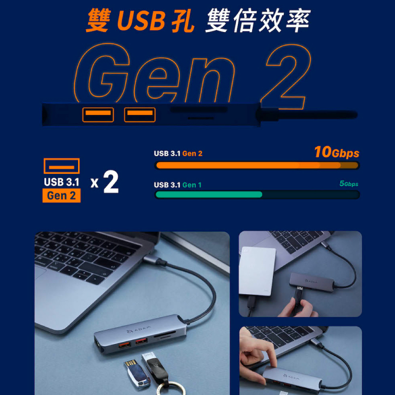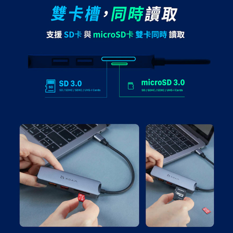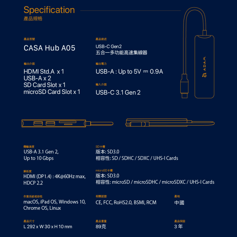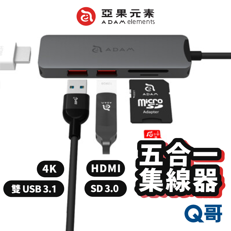 ADAM 亞果元素 Hub A05 USB-C 3.1 Gen2 五合一多功能高速集線器 SD卡 TypeC AD29五合一多功能高速集線器Cables, Chargers & ConvertersQ哥 旗艦商城|最專業的保護貼手機配件