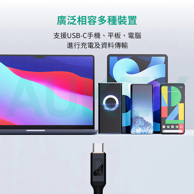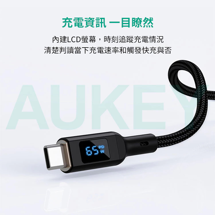 Aukey 數顯 Type-C to Type-C 100W 快充傳輸線 1.8M充電線 傳輸線 快充線 AKY011Type-C 1.8M 快充傳輸線|Type-C 1.8M 快充傳輸數顯線Cables, Chargers & ConvertersQ哥 旗艦商城|最專業的保護貼手機配件