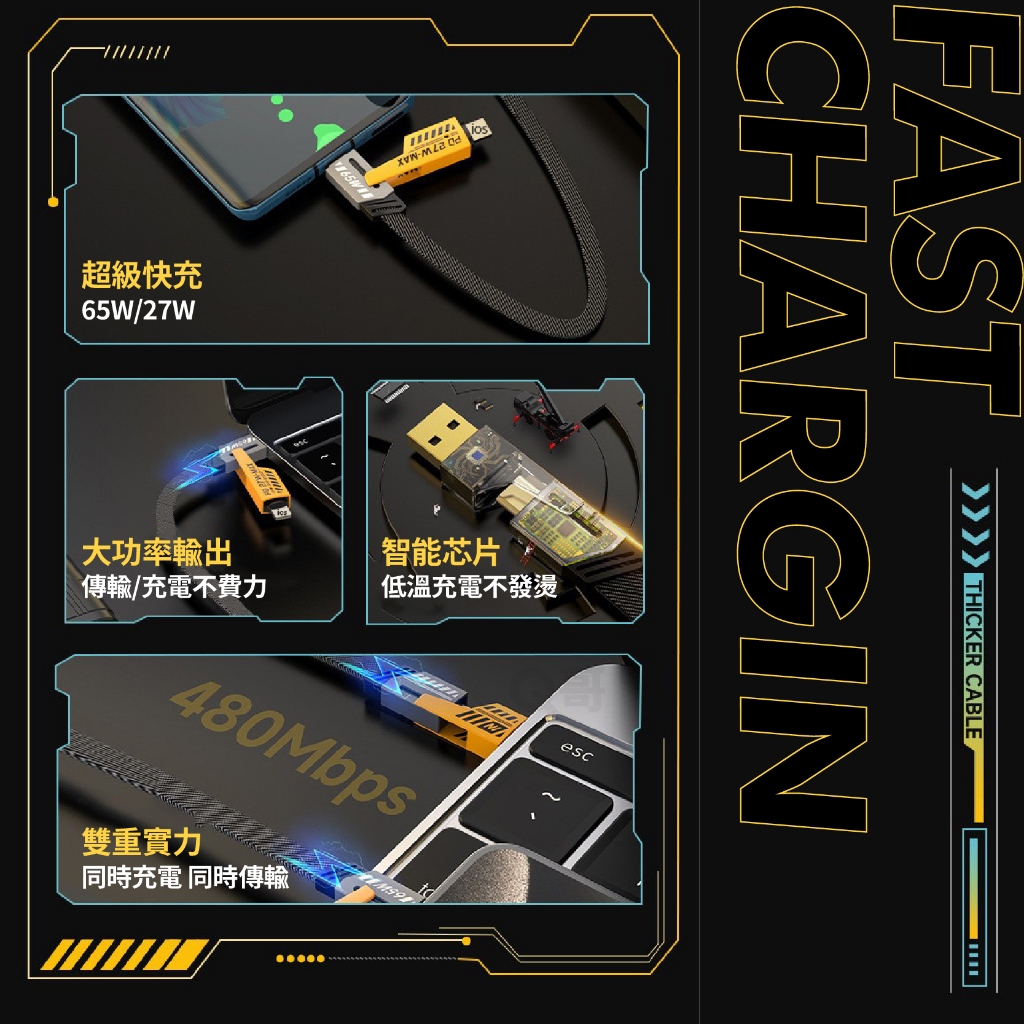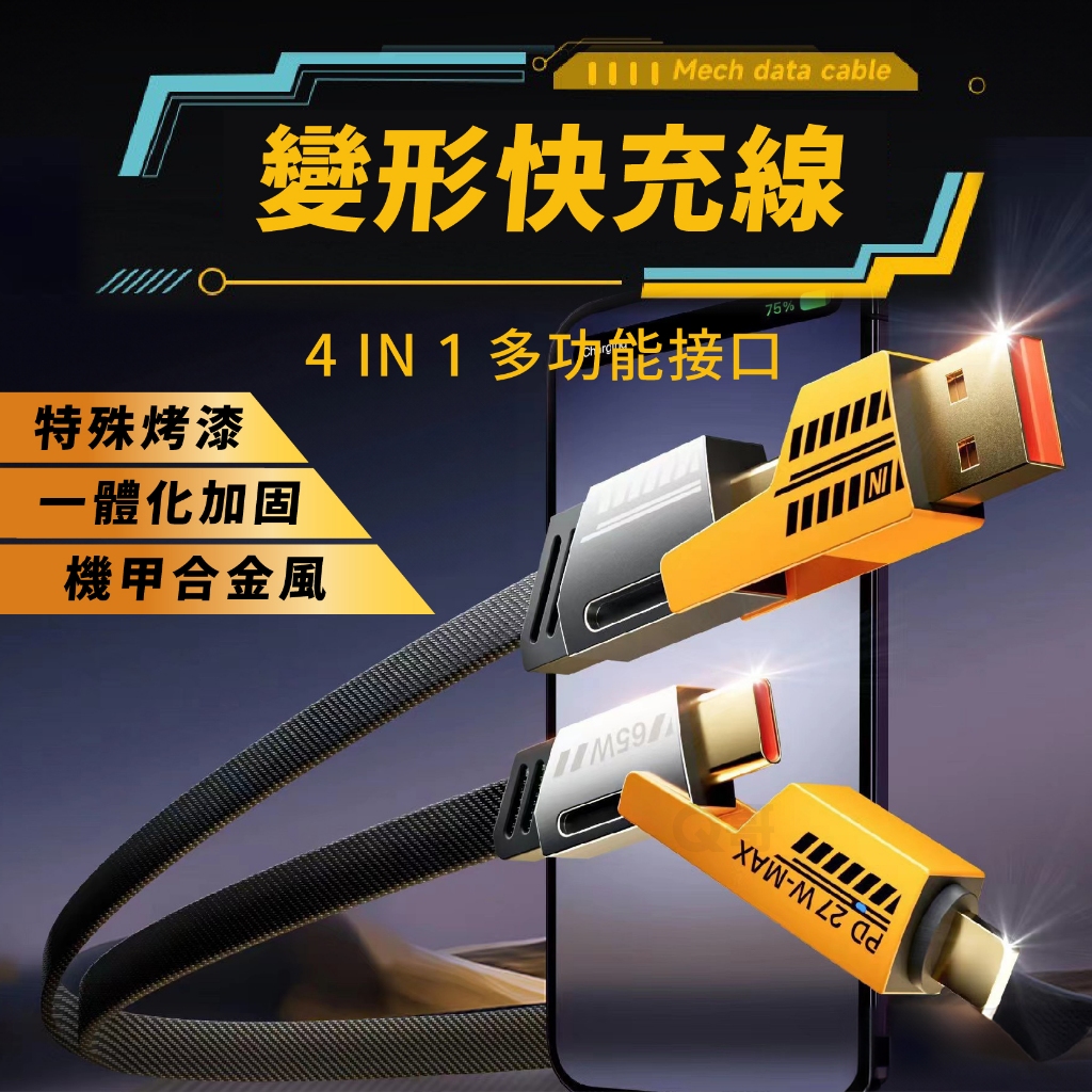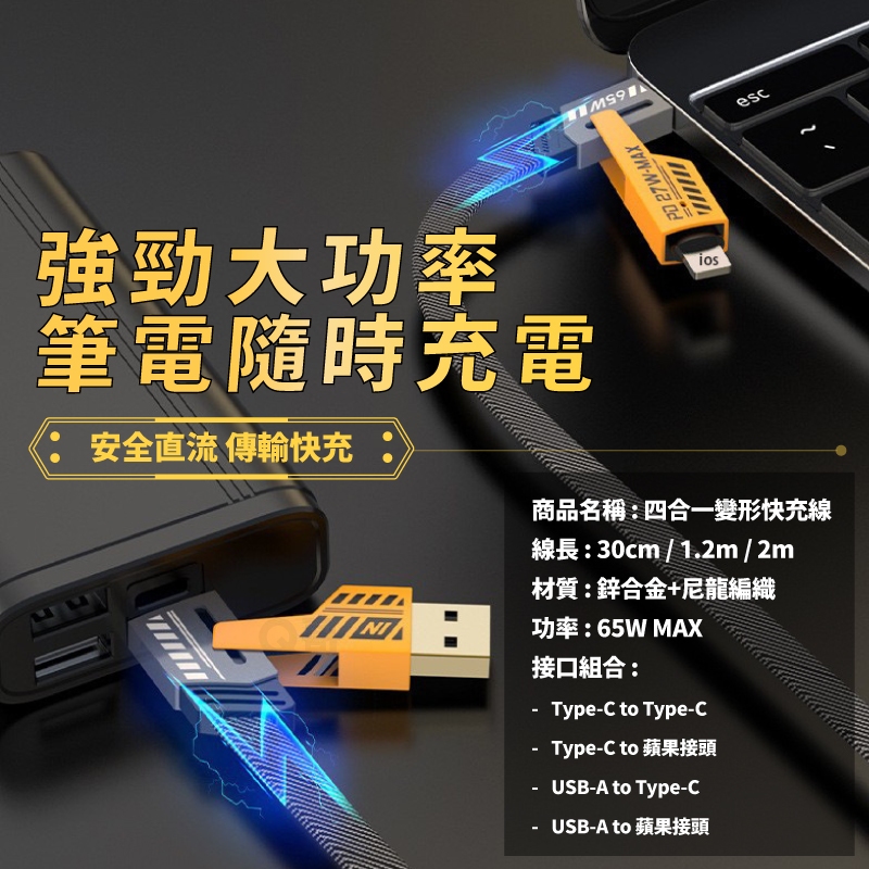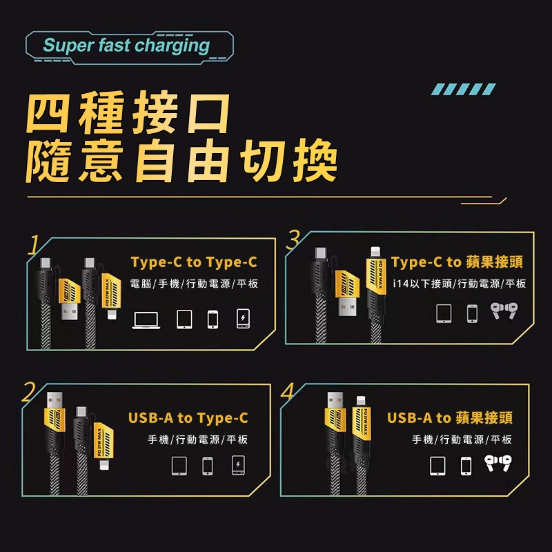 四合一 變形充電線 PD快充 編織線 TypeC USB 適用 iPhone 三星 蘋果接頭 快充線 傳輸線 CH301.5m |四合一PD快充線|隨身短線 30cm|四合一PD快充線|2m |四合一PD快充線Cables, Chargers & ConvertersQ哥 旗艦商城|最專業的保護貼手機配件