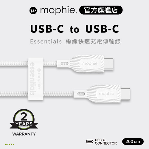 mophie essentials 2M USB-C to USB-C 編織充電傳輸線 白 公司貨mophie essentials 2M USB-C to USB-C 編織充電傳輸線 白 公司貨Cables, Chargers & Convertersmophie 官方旗艦店 | 領券10%蝦幣回饋