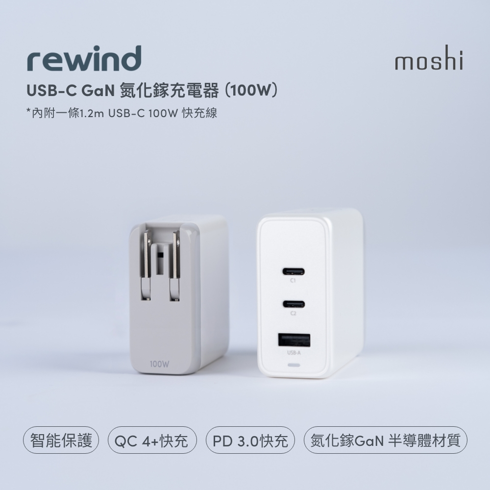 Moshi Rewind USB-C GaN 100W 氮化鎵充電器單一規格Cables, Chargers & Convertersmoshi 官方旗艦店