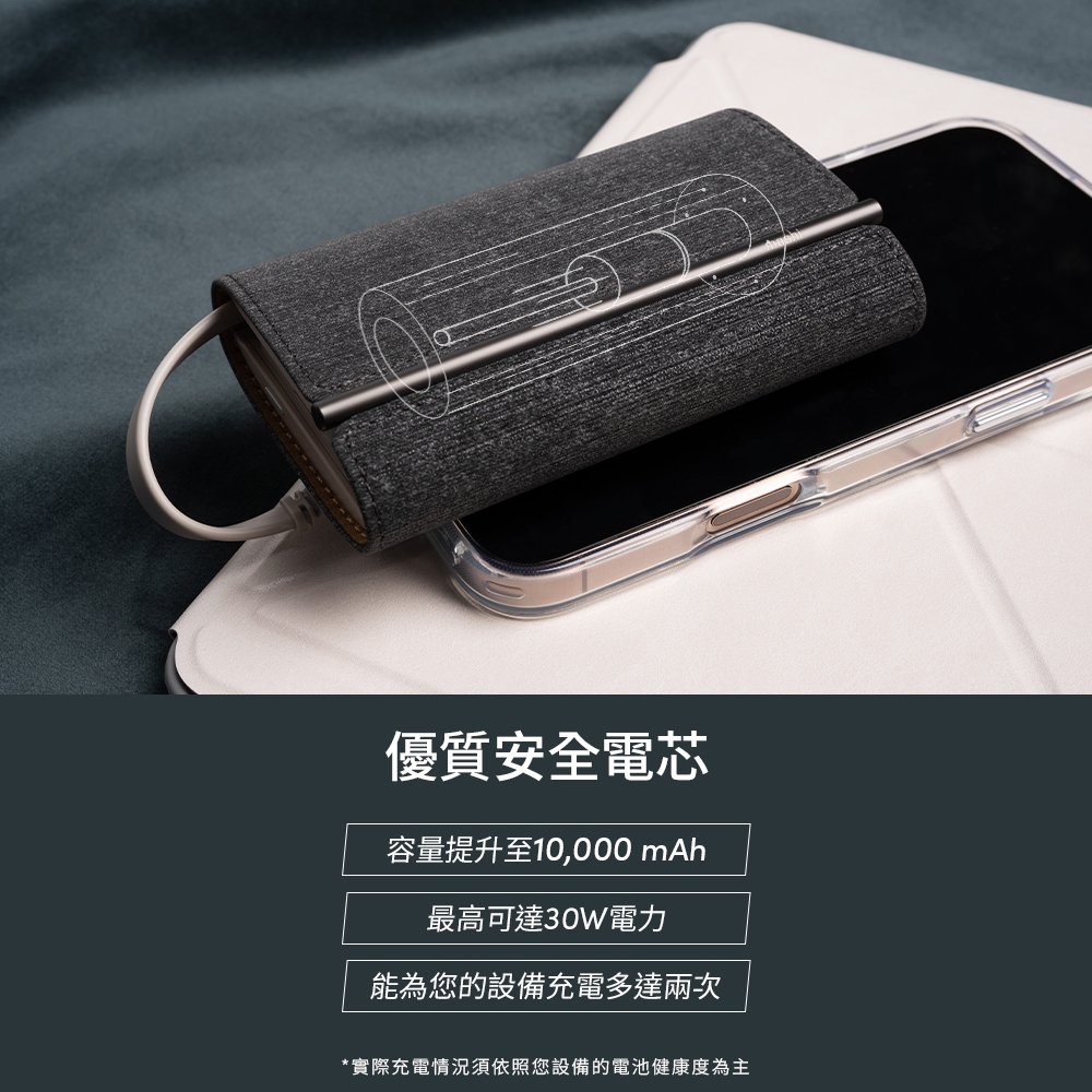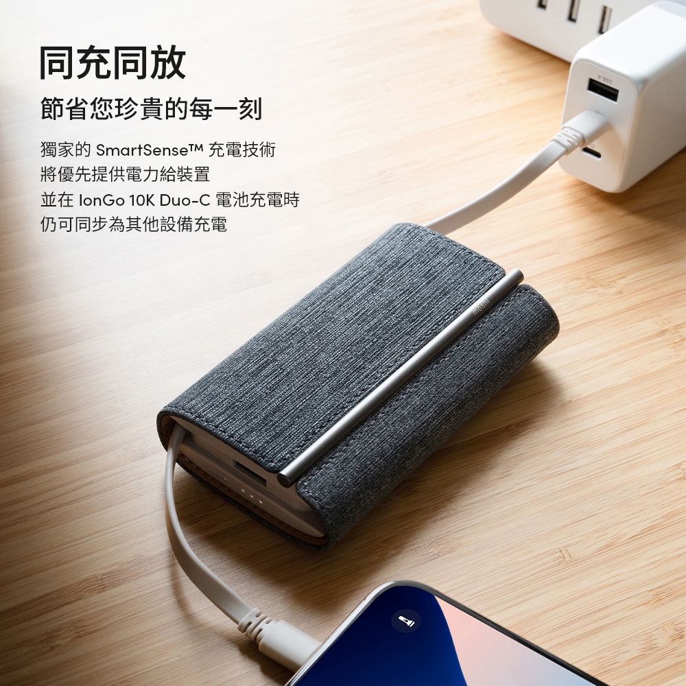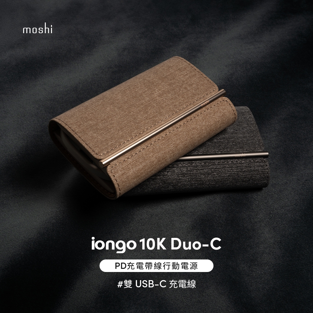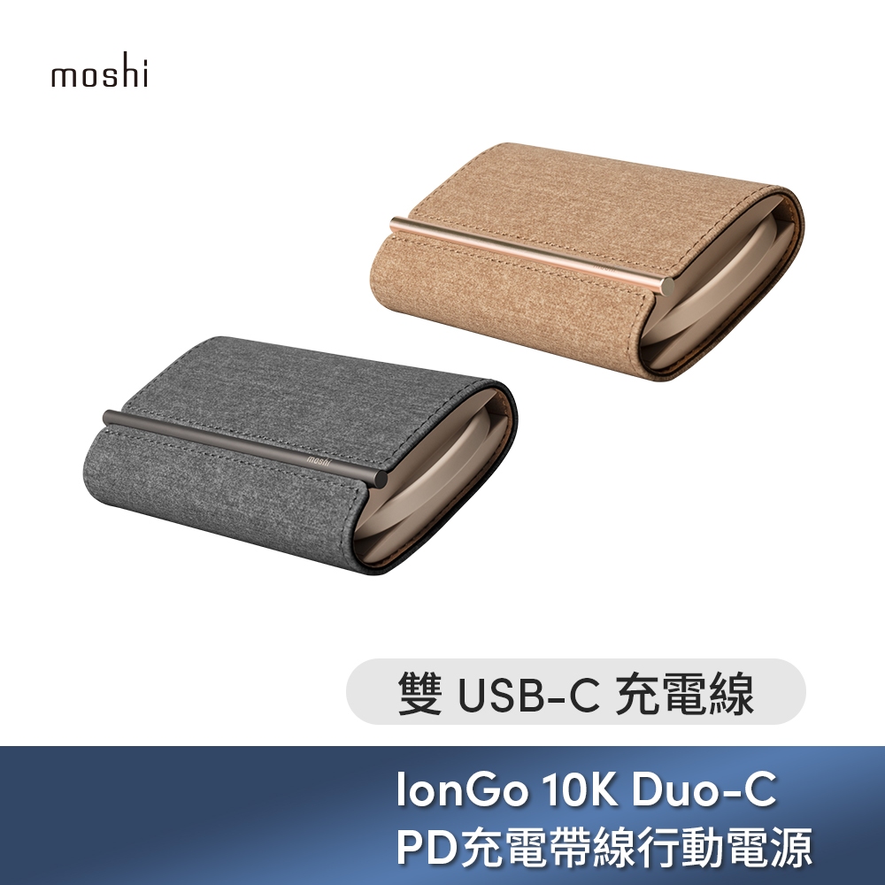 moshi IonGo 10K Duo-C PD充電帶線行動電源 (雙USB-C充電線) 出國可用 Wh mAh標示岩石黑|沙岩棕Powerbanks & Batteriesmoshi 官方旗艦店
