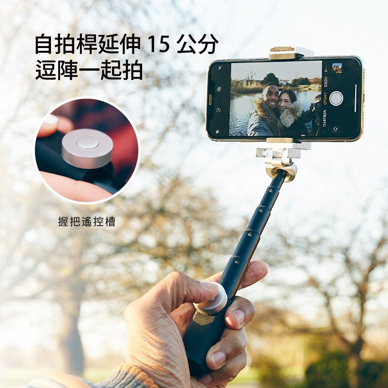 JustMobile | ShutterGrip 2 掌握街拍 自拍桿 自拍棒 藍芽 自拍 過年 出遊 出國霧黑色|銀黑色|粉沙色|鋁合金質感雲台Selfie AccessoriesMUKEN LIFE 3C生活選品|bitplay ⅹ bonson ⅹ 飛利浦