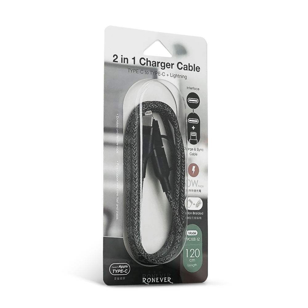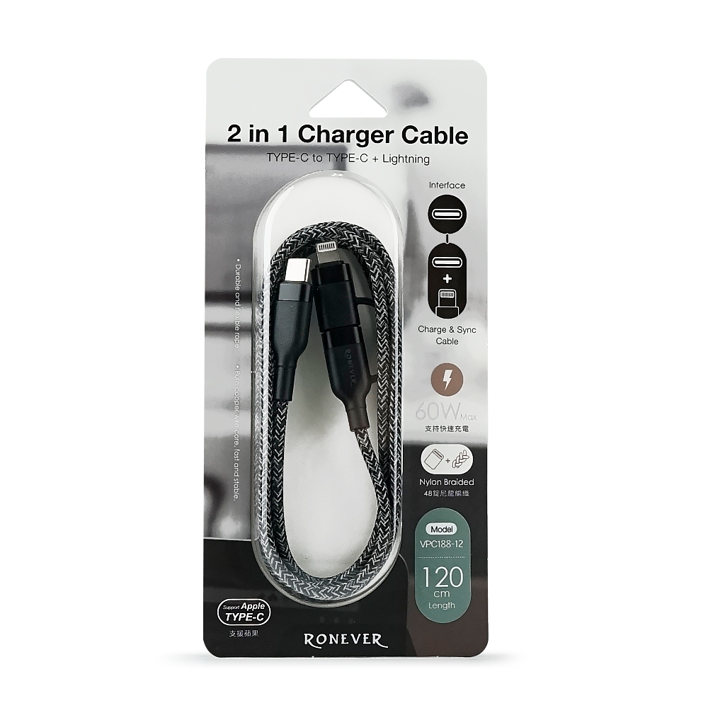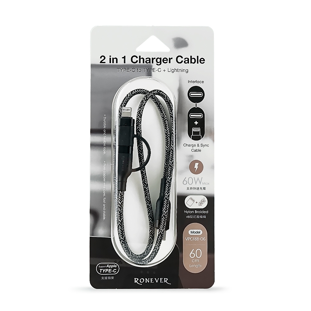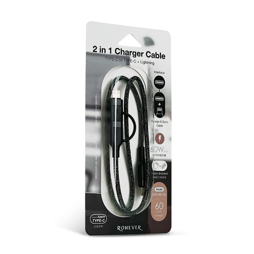 RONEVER VPC188 / TYPE-C二合一充電線(C+IOS)60cm|120cmCables, Chargers & ConvertersRONEVER 官方品牌館