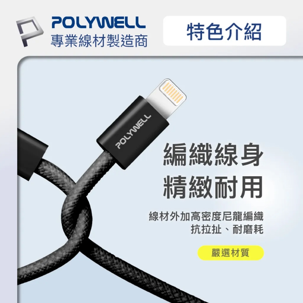 【POLYWELL】12W USB to Lightning 編織充電線 蘋果線 傳輸線 USB to IOS白色,20cm|白色,50cm|白色,100cm|白色,200cm|白色,300cm|黑色,20cm|黑色,50cm|黑色,100cm|黑色,200cm|黑色,300cmCables, Chargers & ConvertersNawies 手機配件 | 代理 倍思 / Lisen / amuok