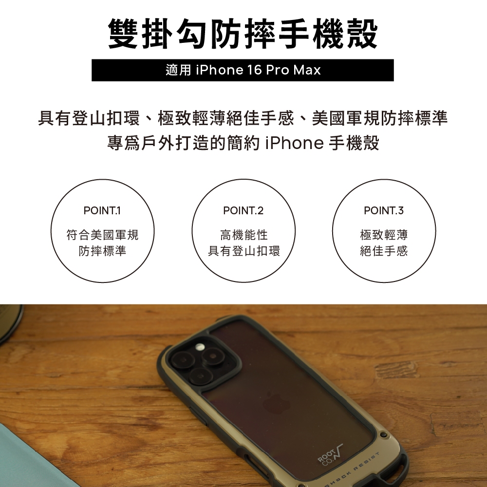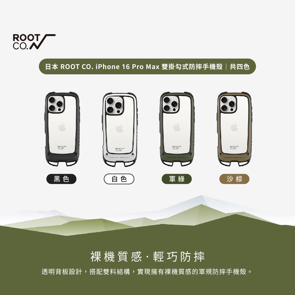 日本【ROOT CO.】iPhone 16 Pro Max 雙掛勾式防摔手機殼 – 共四色黑色|白色|軍綠|沙棕Cases, Covers, & SkinsROOT CO. 台灣總代理