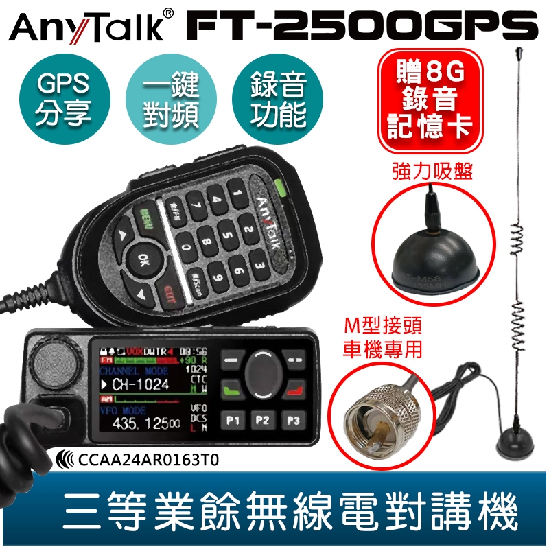 【AnyTalk】FT-2500GPS 三等業餘無線電對講機 車機 GPS定位 定位分享 錄音功能 贈 強力吸盤天線FT-388GPS 黑色 一支|FT-2500GPS+M58強力吸盤天線ROWA 樂華數位