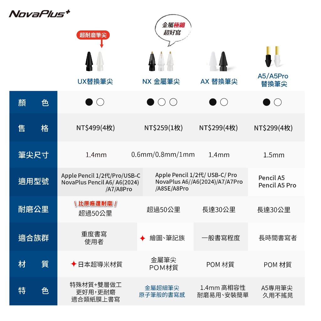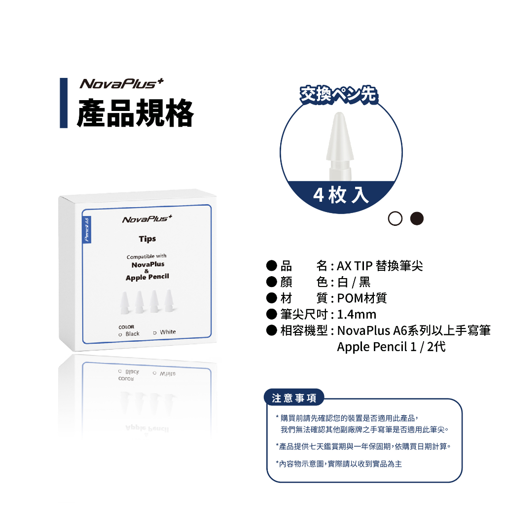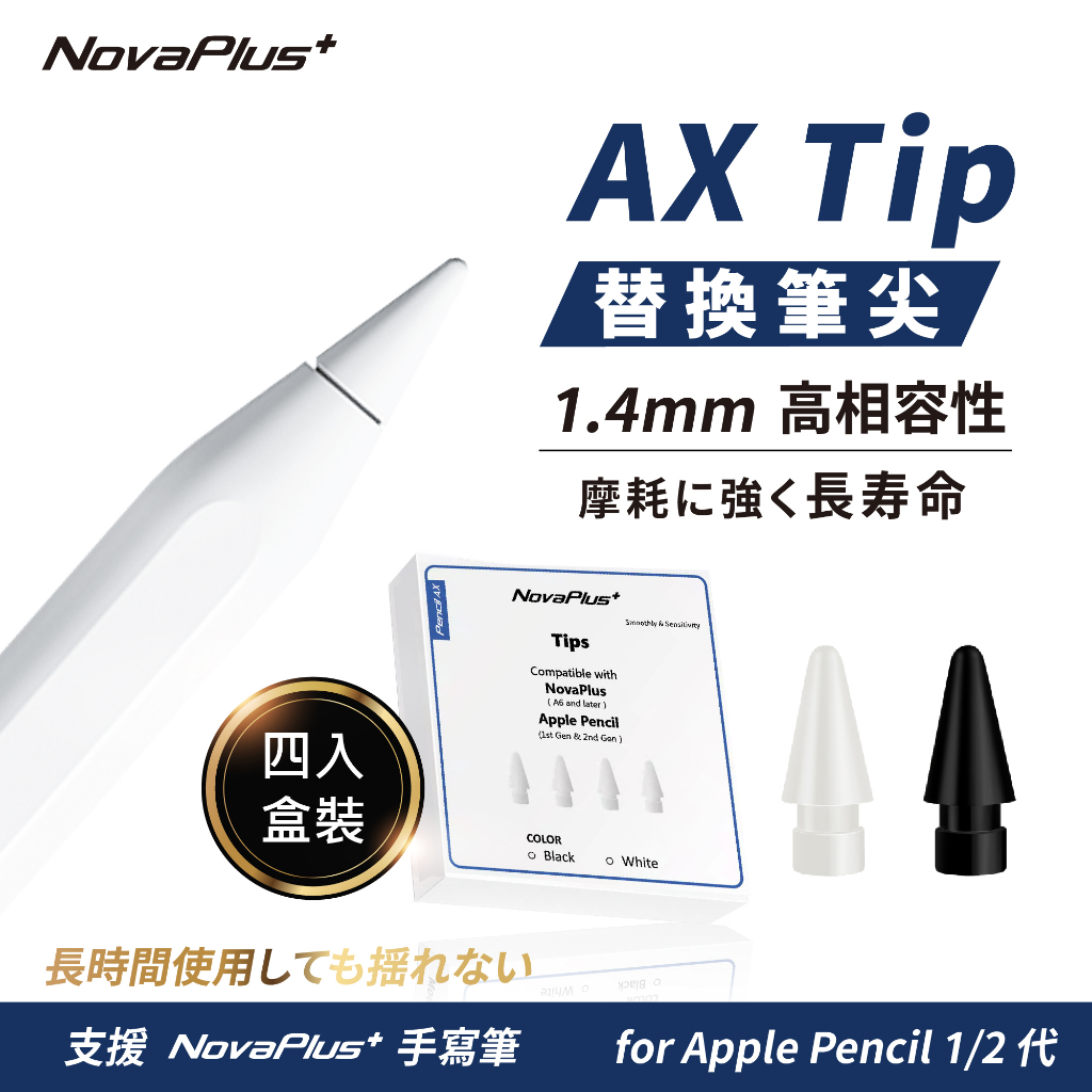 【NovaPlus】Apple Pencil替換筆尖AX四入/耐磨30公里/不傷螢幕 觸控筆替換筆尖經典白色 (一盒四枚)|星曜黑色 (一盒四枚)StylusNovaPlus樂晴科技【臺灣品牌|正品保固】