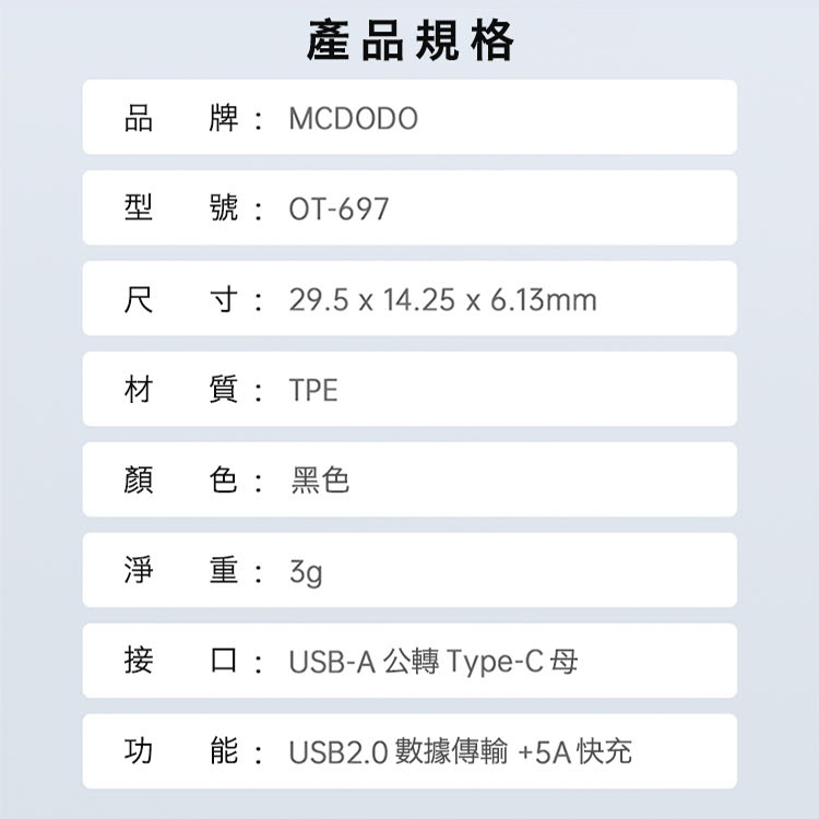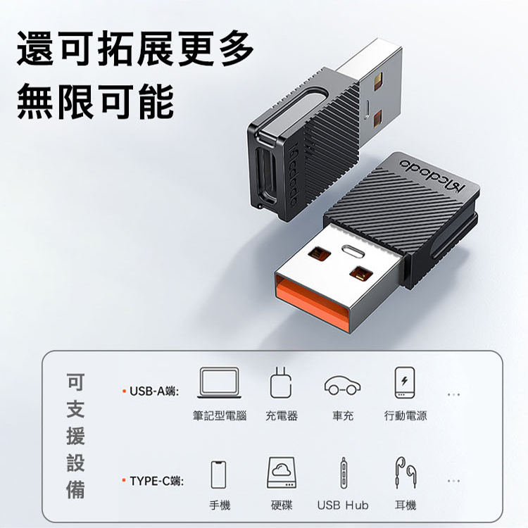 • Mcdodo 酷睿系列 USB-A USB2.0 轉接頭 TypeC 超級快充 5A 轉換頭