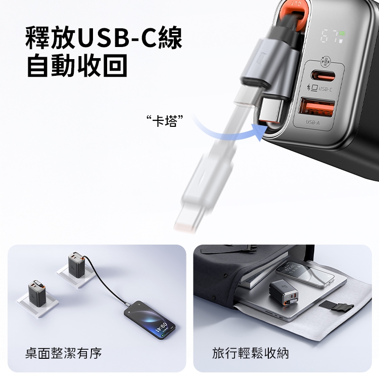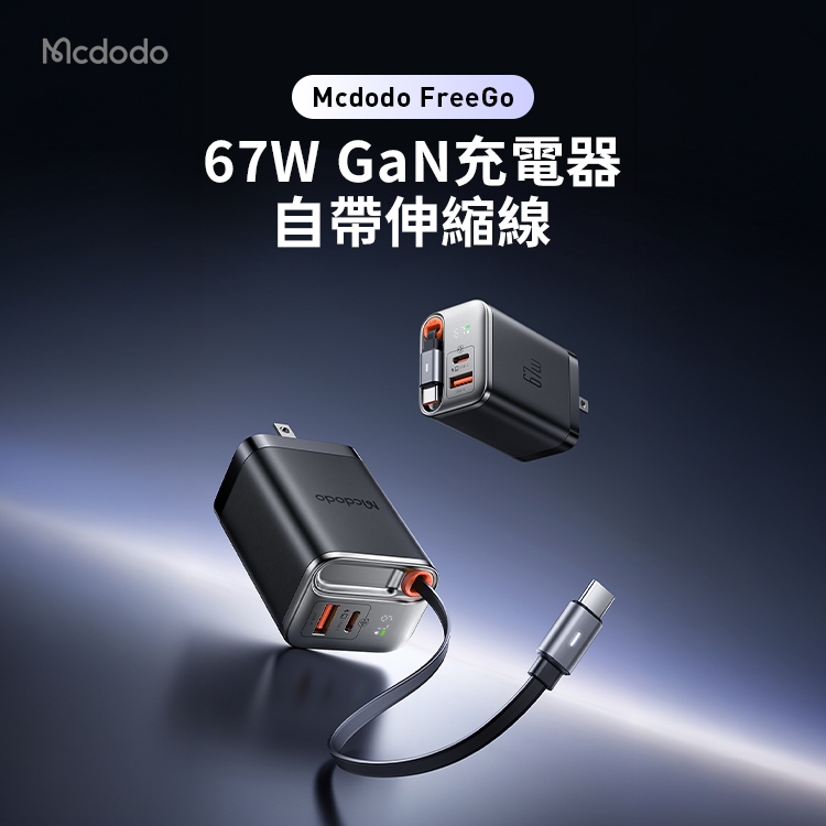 • 麥多多 氮化鎵 GaN 67W FreeGo系列 自帶伸縮線快充充電器(CH-411) 台灣現貨 隔日配 2025新款