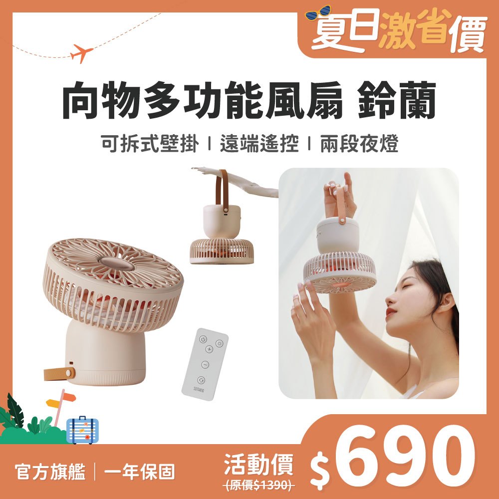 SOTHING 向物多功能風扇 鈴蘭|超涼桌面風扇 吊扇 USB充電風扇 多功能電風扇 露營風扇 照明風扇 壁掛電風扇【杏色】向物多功能風扇 鈴蘭USB & Mobile FansSOTHING向物|品牌旗艦店