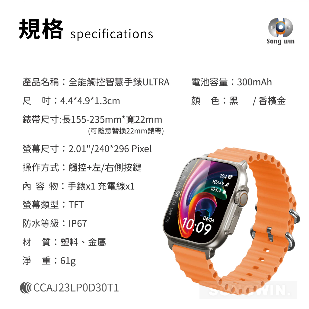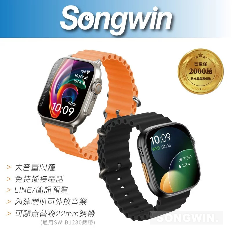 【Songwin】SW-B1500 全能觸控智慧手錶ULTRA 外放喇叭 語音 簡訊 鬧鐘 運動記錄 日常防水 保固半年黑|金Smartwatches & Fitness TrackersSONGWIN 旗艦館