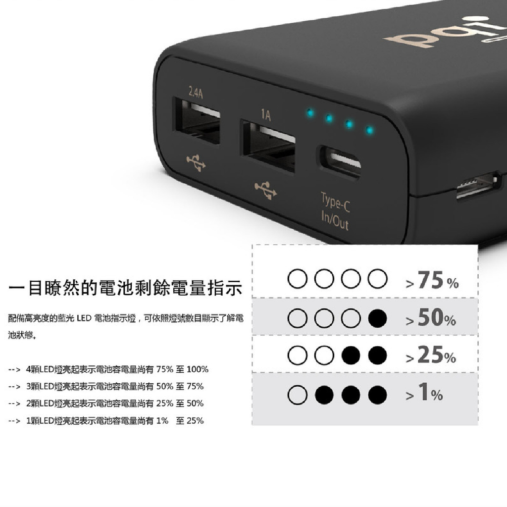 PQI i-Power 10000EC 行動電源 Type-c 雙輸出 10000mAh 大容量 快充 行充 PQI0110000EC Type-c 行充(黑)|6000E雙輸出 行充(白)Powerbanks & BatteriesQ哥 旗艦商城|最專業的保護貼手機配件
