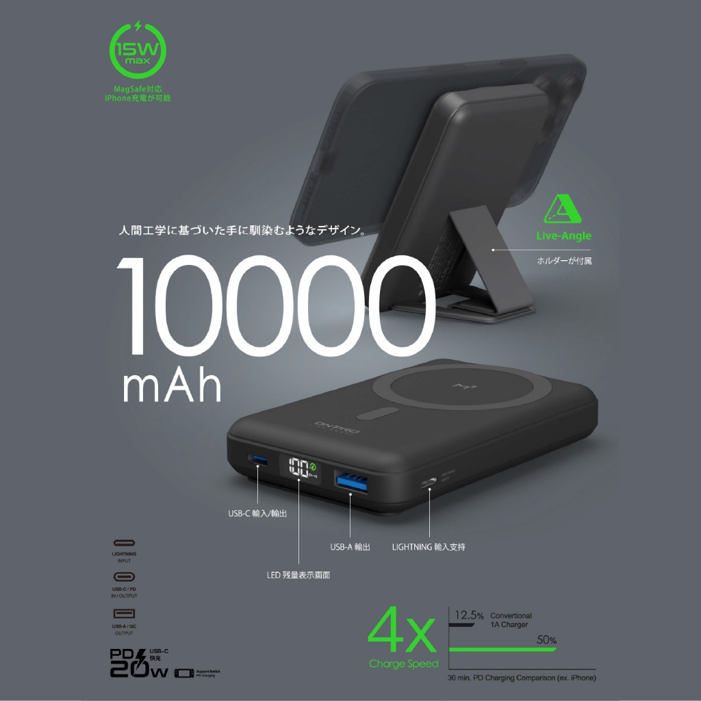 ONPRO M1 10000mAh 磁吸支架行動電源 PD 快充 Magsafe 無線 磁吸 支架 行動電源 ON43石墨黑|奶茶Powerbanks & BatteriesQ哥 旗艦商城|最專業的保護貼手機配件