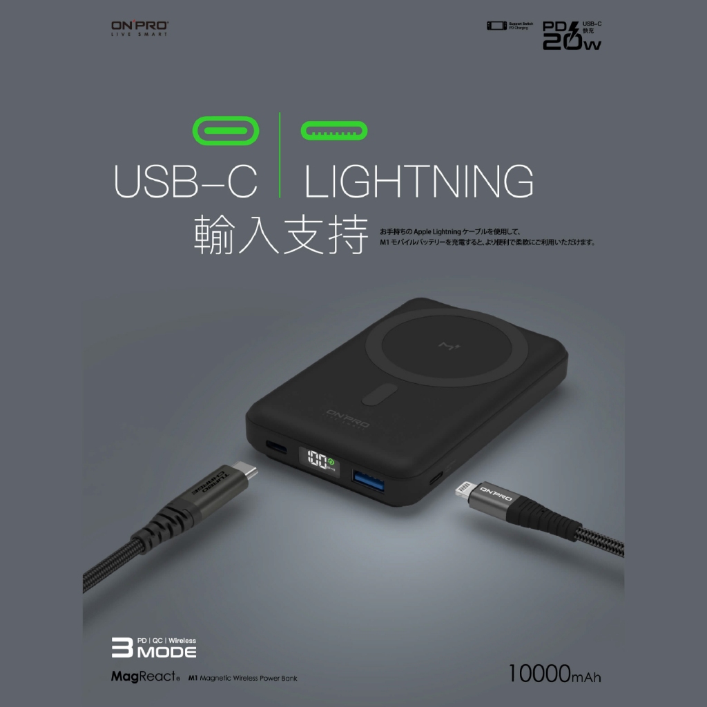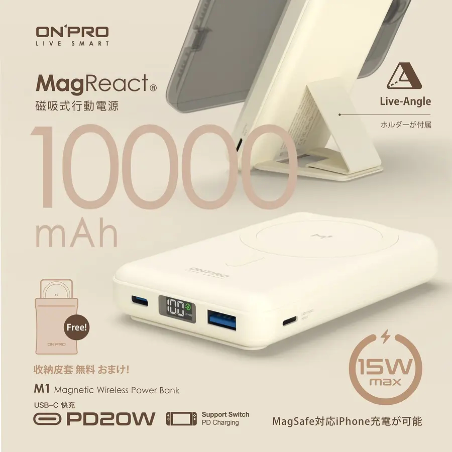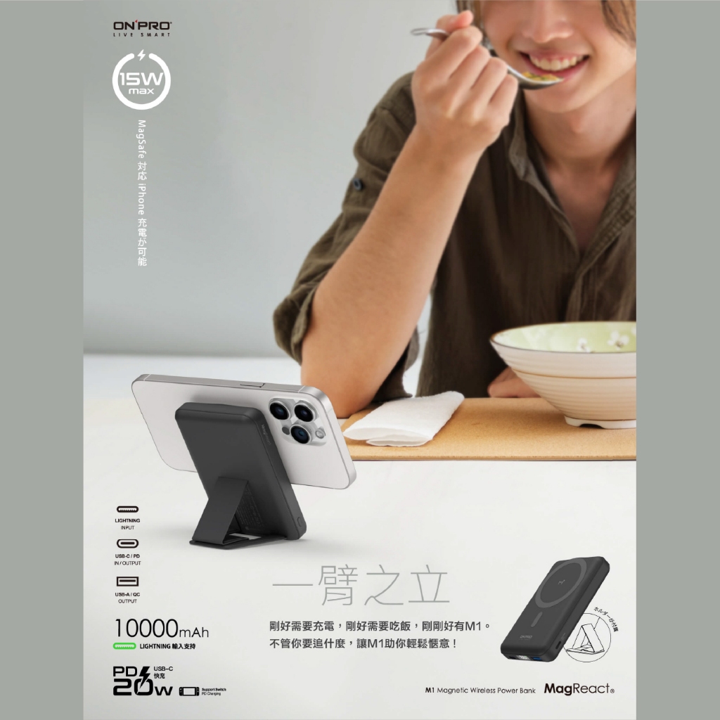 ONPRO M1 10000mAh 磁吸支架行動電源 PD 快充 Magsafe 無線 磁吸 支架 行動電源 ON43