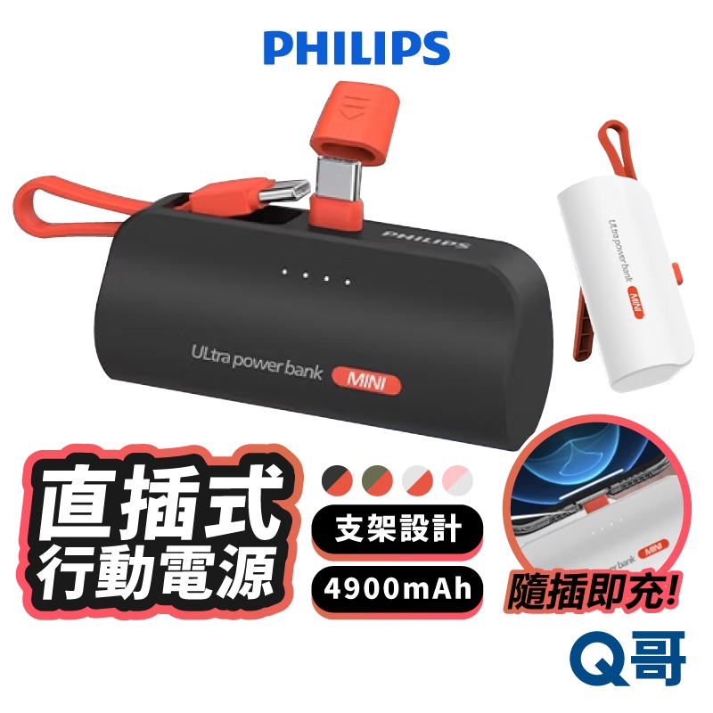 PHILIPS 飛利浦 直插式 行動電源 加長版 自帶線 無線 TypeC 行充 迷你 行動充 口袋電源 PLP001粉,Lightning|粉,Type-C|黑,Lightning|黑,Type-C|白,Lightning|白,Type-C|綠,Lightning|綠,Type-CPowerbanks & BatteriesQ哥 旗艦商城|最專業的保護貼手機配件