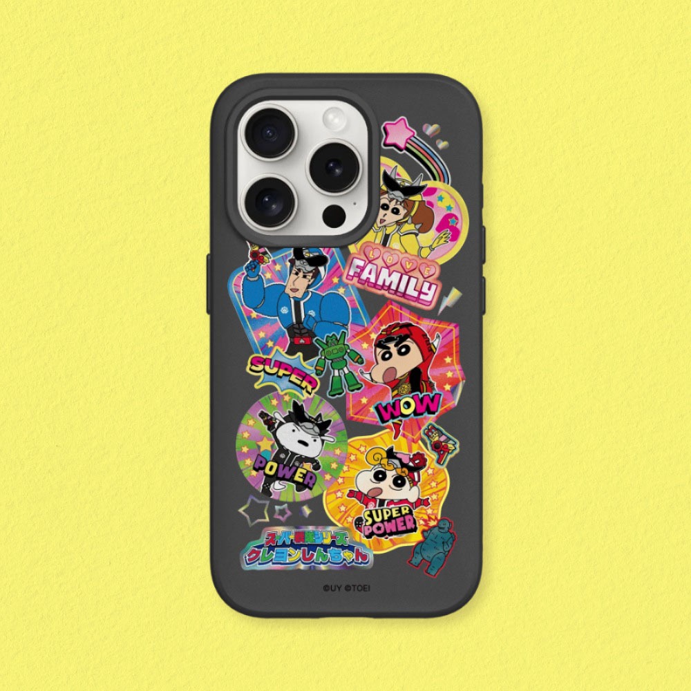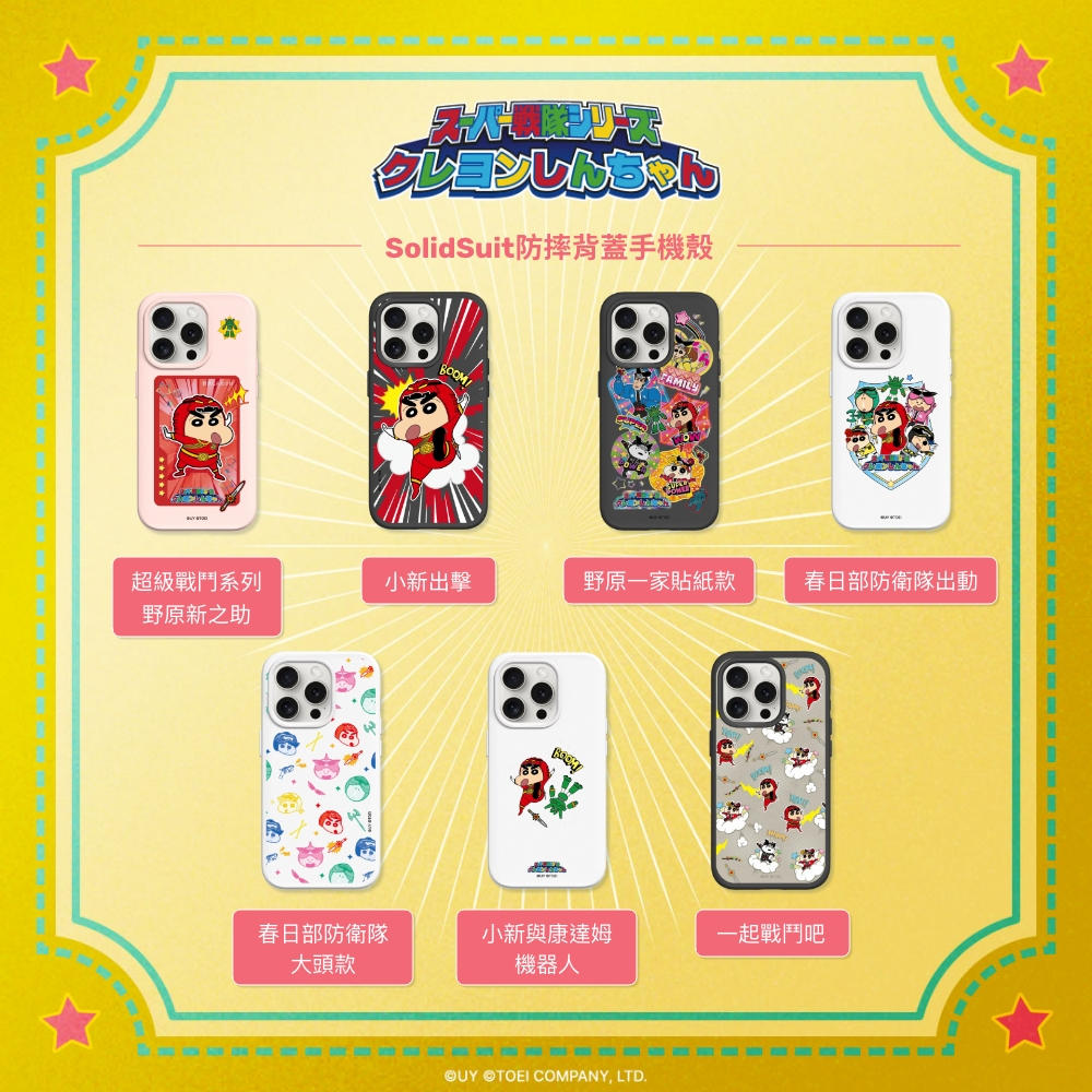 • 犀牛盾 適用iPhone SolidX強化吸震緩衝防摔手機殼∣蠟筆小新X超級戰隊系列/野原一家貼紙款